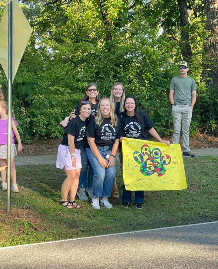 5th-grade teachers and guidance counselor cheering on the kiddos