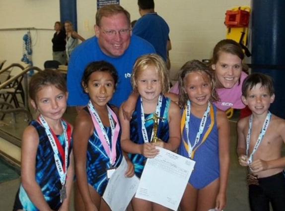 Above: Barry Hartley and his daughter Caroline Fortner with dive team members Sydney Raines Davis, Tori Nichols, Madelyn Stocks, Mary Cooper Bearden and Wilson Davis.