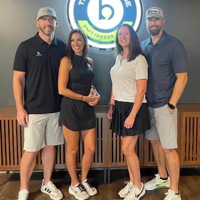 Randy and Stacie Quinn and Christian and Sarah Wright first connected as neighbors, but it was golf that really brought them together. Wright played golf when he was younger and wanted to get back into the game, so he installed a simulator in his garage. Before long, Quinn was spending time there too. What began as friendly rounds evolved into an idea for something bigger: a business partnership with an indoor golf business of their own.