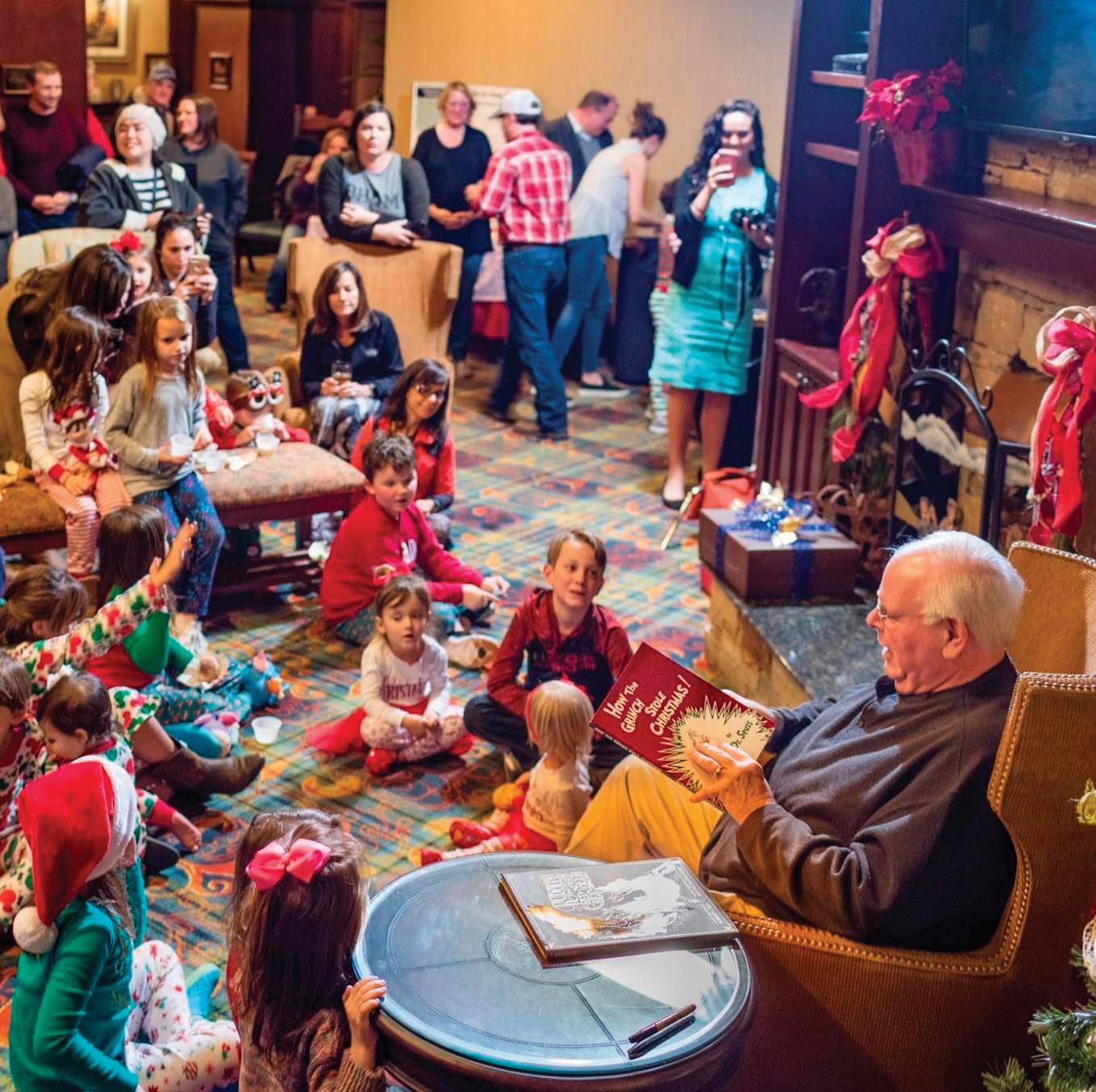 calendar for this year has not yet been finalized, holiday events commence the first week of December. Fireside readings in the lobby are held from 6:30 to 7:00 p.m., where local celebrities come in and read Christmas stories to children. This event is open to the public as well.