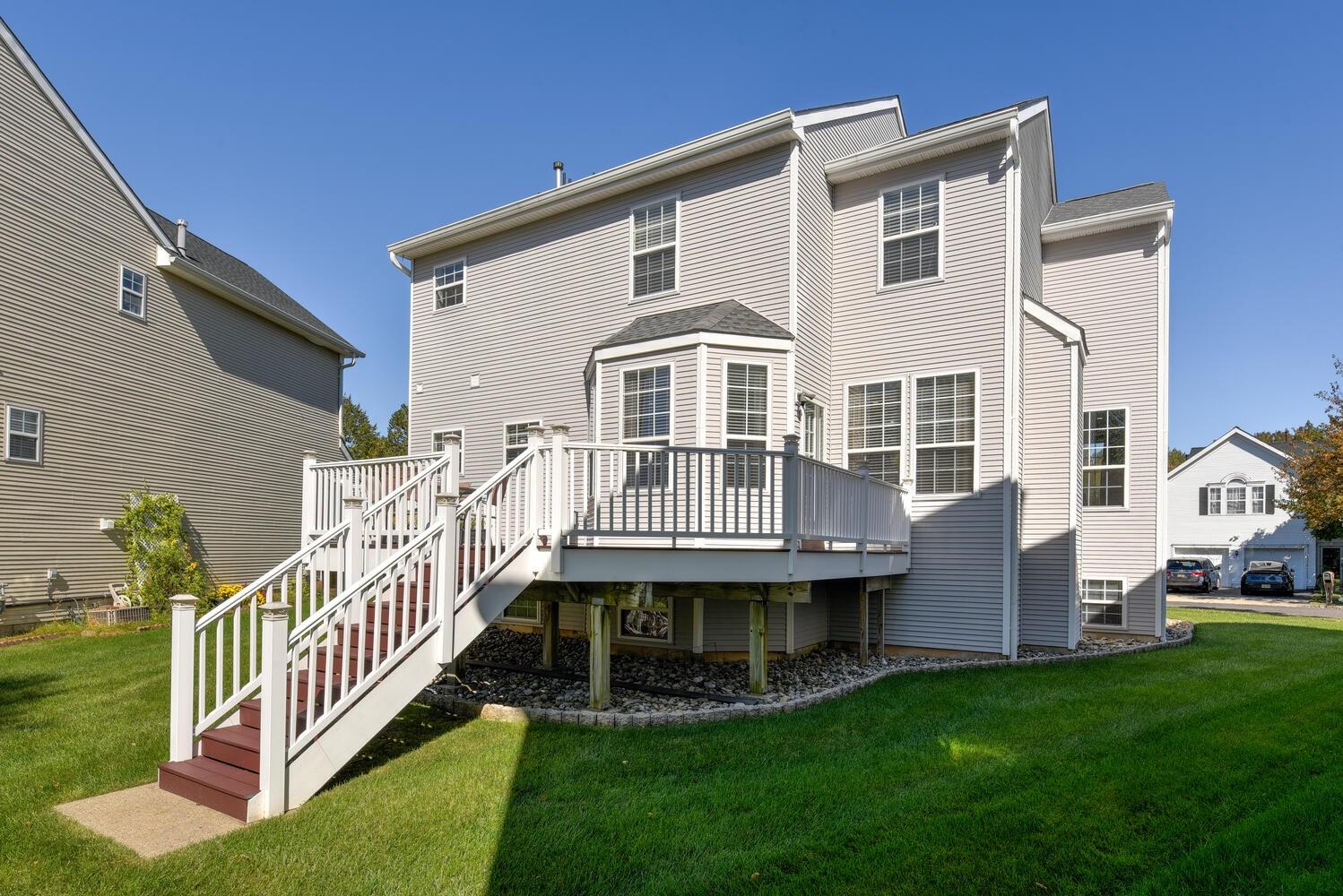 Beautifully updated 4 BR, 2.5 BA brick-front Colonial in desirable Liberty Green. Light-filled and move-in ready, this home features Mirage honey-maple hardwood floors throughout, an updated kitchen with cherry cabinets, granite counters, and stainless-steel KitchenAid appliances. The primary suite offers two walk-in closets and a stunning bath with a new glass-enclosed shower, soaking tub, and custom tile. Finished English basement adds extra living space. Numerous updates: new paint (2024), new LED recessed lighting (2023), new roof (2021), new gutters (2025), new HVAC with UV filtration (2016/2024), and new Trex deck (2016). Enjoy community amenities—pool, tennis, playground, clubhouse—and an easy commute to NYC/Philly via nearby train and Route 1.