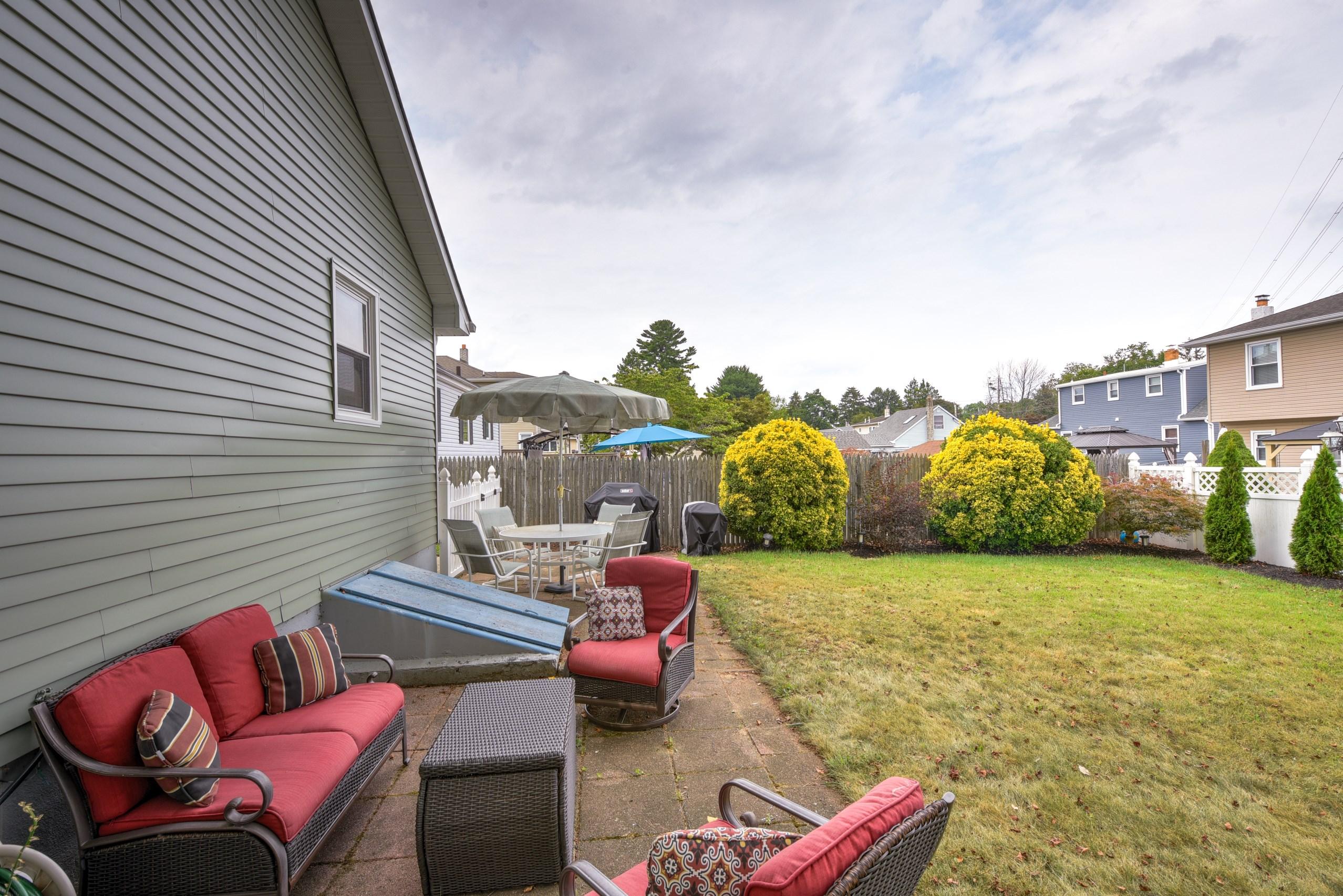 Close to the train station, major highways and shopping this home has it all. As you walk in to the spacious living room you will notice hardwood floors throughout. The large eat-in kitchen is a sunny oasis with stainless steel appliances and updated cabinetry that is perfect for Saturday breakfasts or just enjoying a cup of coffee. Continue down the hallway to three generously sized bedrooms that boast plenty of closet space as well as an updated full bath. The finished basement compliments the home with additional multi-functional living spaces, a half bath and laundry area. This home is complete with a fenced in back yard and patio which is perfect for entertaining.