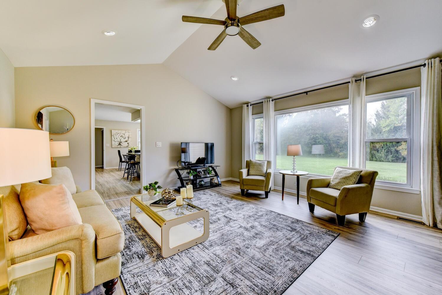 Welcome to 5 Glengarry Way — a beautifully renovated, move-in-ready ranch set on a picturesque 0.83-acre lot. This home offers 4 spacious rooms, including 3 bedrooms and a versatile 4th multi-use room, plus 4 baths. Inside, an open and sun-filled layout connects the living and dining rooms, while the grand family room impresses with volume ceilings, a floor-to-ceiling brick fireplace, and abundant natural light.
