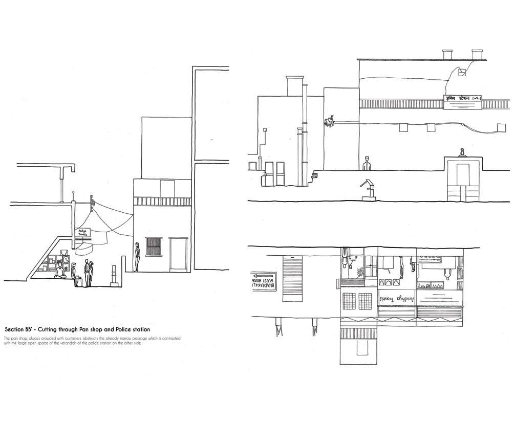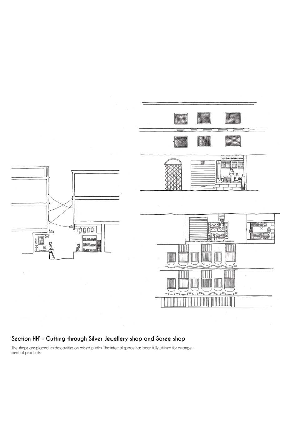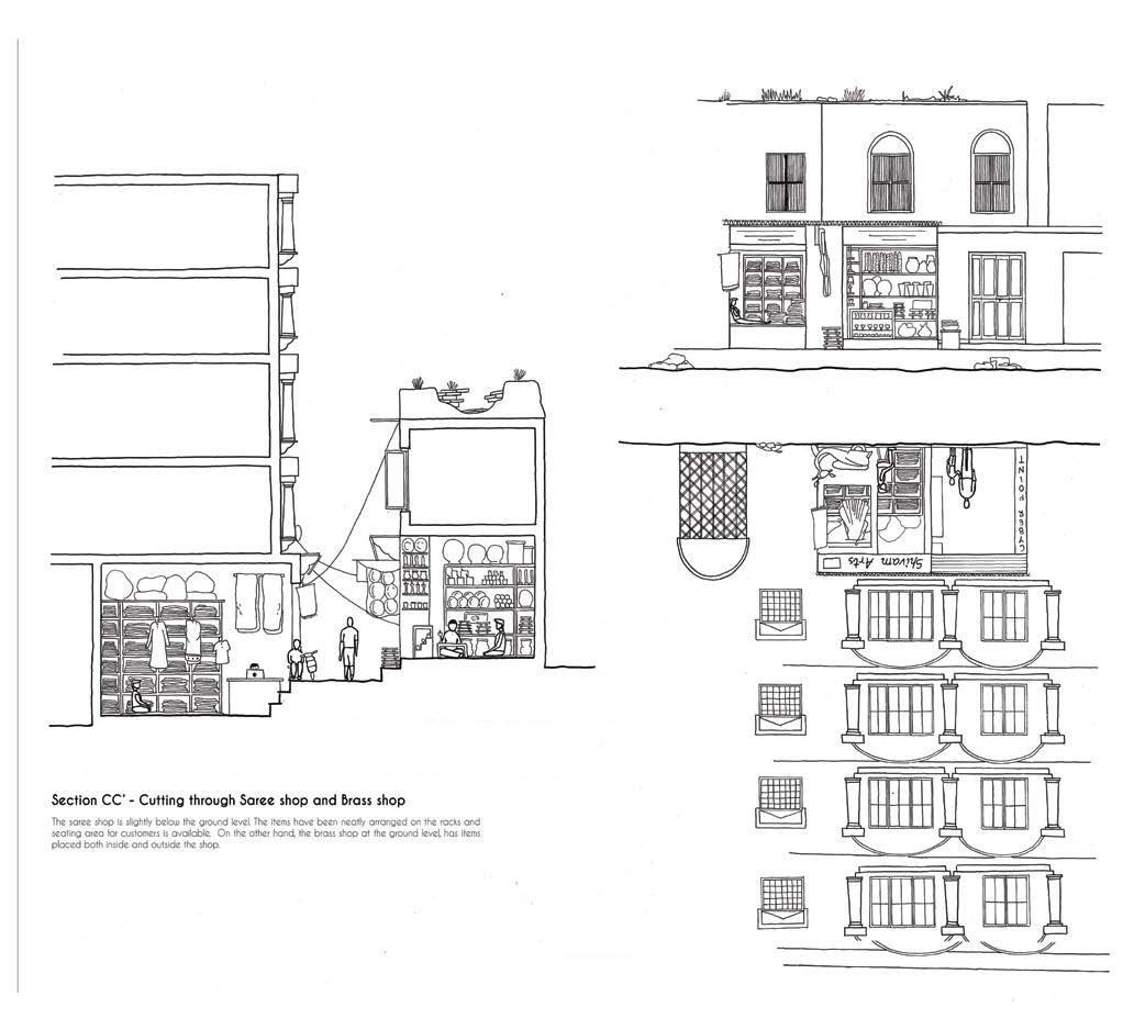 The city of Varanasi is famous for its Ghats. There are narrow streets behind these Ghats where the buildings do not allow sunlight to pass through. These buildings have shops on the ground floor for easier visibility and accessibility and residences on the upper floors. This study focuses on the streets behind a 400m stretch extending from Dashashwamedh Ghat to Chousatti Ghat and the space utilization there. There is a continuous line of shops of varying sizes that share a common wall. Within these shops, space utilization in terms of the arrangement of products varies. The shops on this side sell everyday items as well as items that would attract tourists more. Apart from the stationed shops, one can also find mobile shops where the vendors travel through the streets while singing their jingles to attract customers.