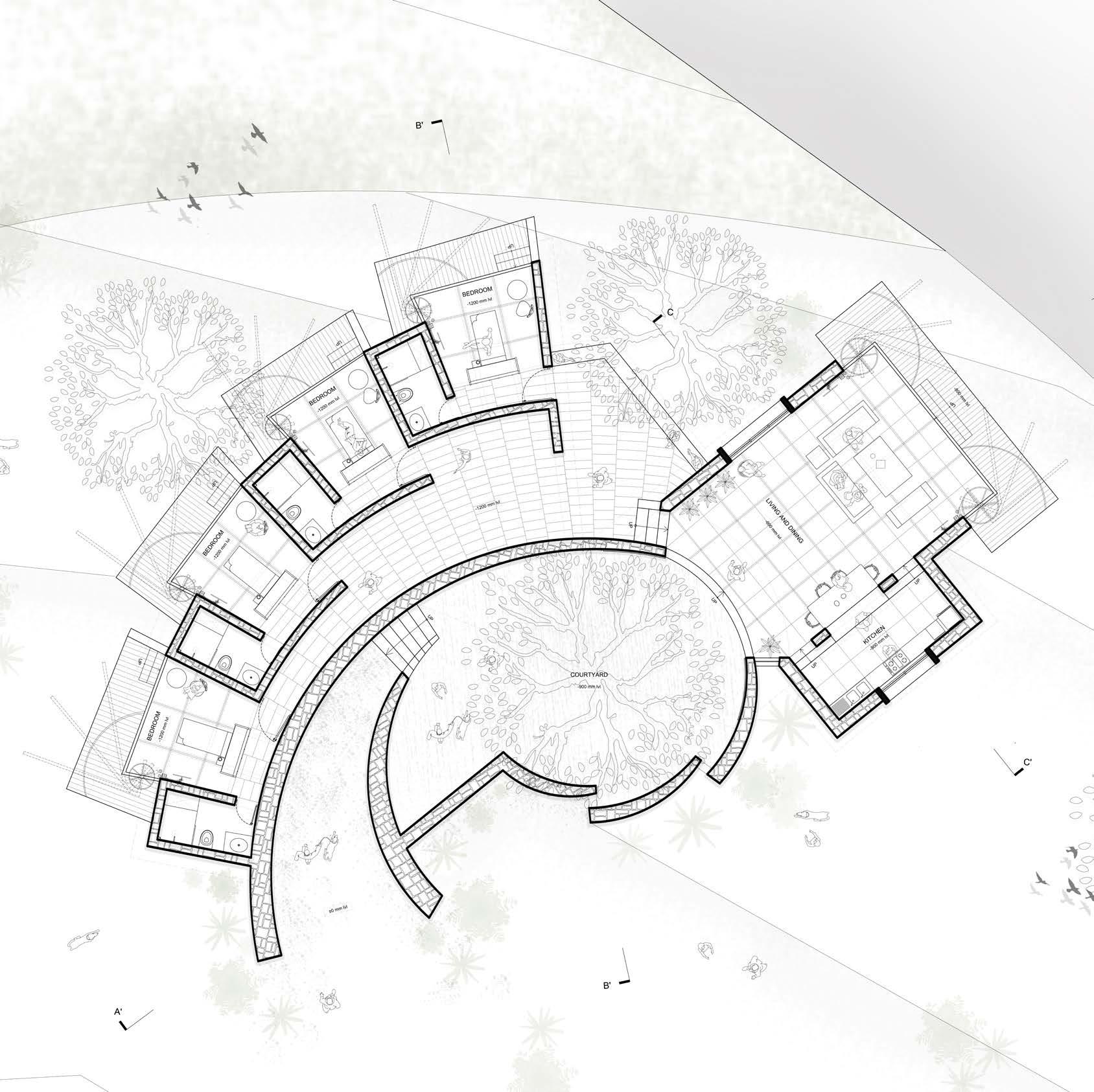 Market School Square Lapérouse A A’ C B C’ B’ Pedestrian Vehicular STUDIO APARTMENTS HOUSING + CO-WORKING HEALTH CENTER + MEDICAL DORMS ATELIER