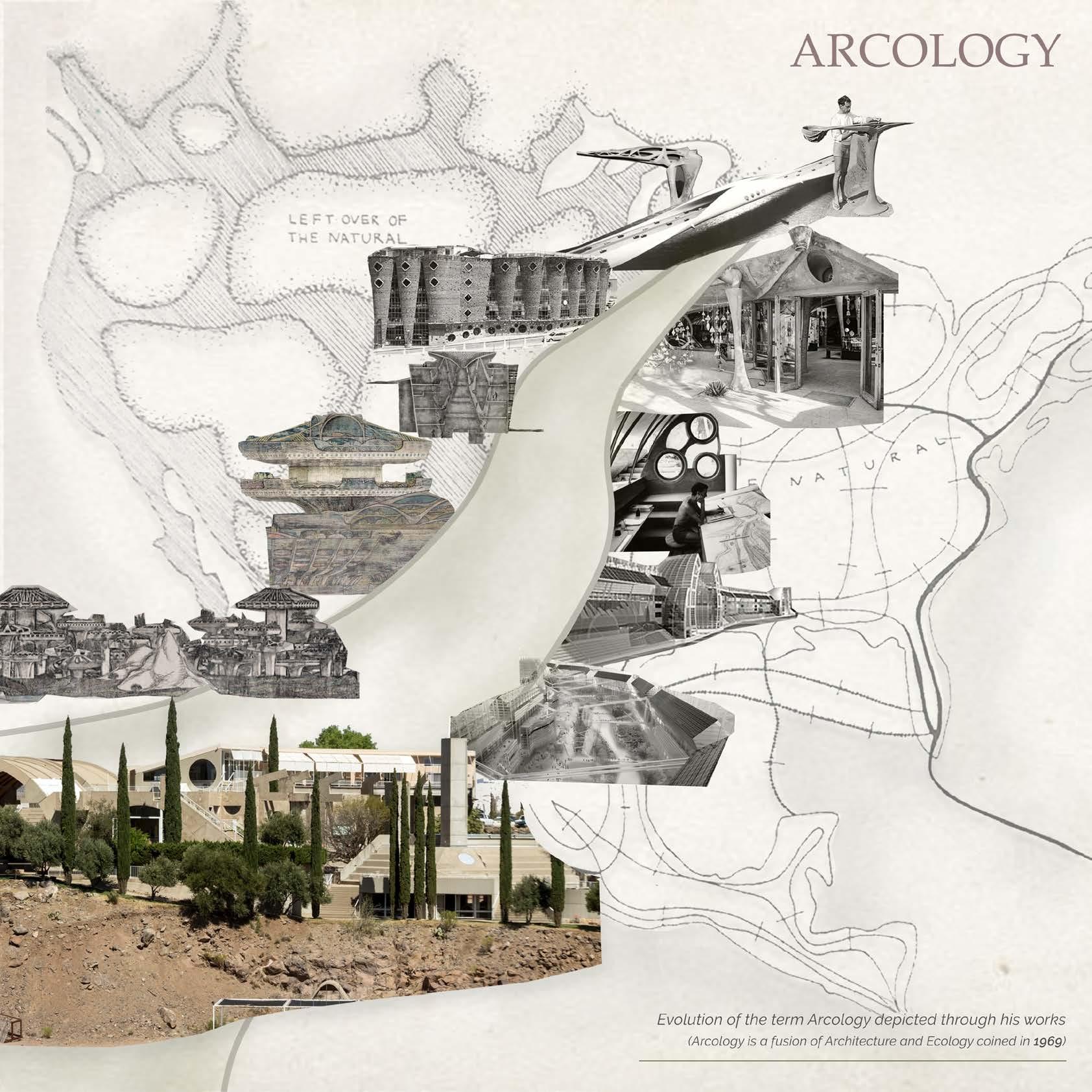 Born in 1919 in Turin, Italy, Paolo Soleri graduated from Politecnico di Torino. In 1947, he moved to Arizona, US to do a fellowship under FL Wright. Though the fellowship was for a short period of time (one and a half years), FL Wright clearly played a major role in influencing the ideologies of Soleri. Returning to Italy after his fellowship, in 1965, Soleri along with his wife started their own practice called “Cosanti Foundation” in Arizona. Taking all learnings and experience, in 1969 he coined the term “Arcology” which is a fusion of architecture and ecology that is capable of demonstrating a positive response to many problems of urban civilisation such as population growth, depletion of natural resources and food scarcity. This illustrative essay depicts the journey of Arcology in one of his famous projects named Arcosanti- Soleri’s vision of how a city should be in future.