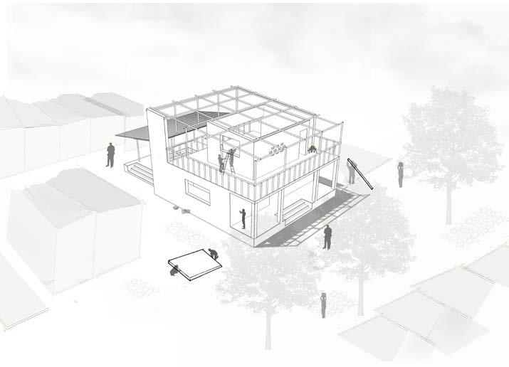 PO rtable IS olation UN it Integrated unit reduces the hassle of referring manuals Exhaust with HEPA filters are used to maintain the ventilation Canvas used as partition can be detached to create a larger space The box with wheels is pulled using a bike. Larger number of units can be stacked and transported via heavy vehicles At an institutional scale, units of varying functions can be connected using an inflatable tube/tunnel that filters out the air regularly The geometry allows light even when several units are placed together unlike the cuboidal blocks Sanitising tunnel provided at the buffer 01 | Base to Base 04 | Triangular Panel to Side 07 | Wood to MS Plate 10 | Wood to MS Plate 11 | MS Frame Tension 08 | Base to MS 05 | Triangular 02 | Base Materials Size Cost Per CDX Plywood 50 mm thick Rs. 500 per Steel Box Section 40 x 40mm 76/kg Steel Pipe 25 mm dia. 76/kg Canvas Cloth - Rs. 25 per sq.m Additional Hardware -