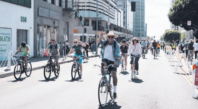 Nonprofi t CicLAvia sponsors open streets events throughout LA County It’s tough to imagine Santa Monica Boulevard without a single car, but at some point in 2022 it may be fi lled with booths and bikes instead. At the Aug. 3 Study Session, Transportation Planner Jessie Holzer presented council members with a fi rst look at the CicLAvia Open Streets event, a potential partnership with West Hollywood and Los Angeles to extend car-free streets all the way from East Hollywood to the intersection of Santa Monica Boulevard and Beverly Drive for an entire Sunday in either April, May or August of next year. (CicLAvia continues on page 16)
