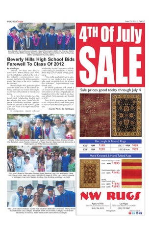 Wednesday by the Department of Education stating 21 percent of LAUSD students drop out of school before graduating. “Our stellar graduation rate is a testament to our students and teachers who work incredibly hard to achieve this milestone,” Superintendent Gary Woods said. 69 BHHS graduates will attend a UC school in the fall while 26 students will attend a Cal State. 20 graduates are headed to UCLA, the most of any fouryear school. Nine graduates are headed to USC. Four BHHS graduates are headed to Ivy League schools, with three going to Harvard and the fourth going to Cornell. Courier Photos by Matt Lopez