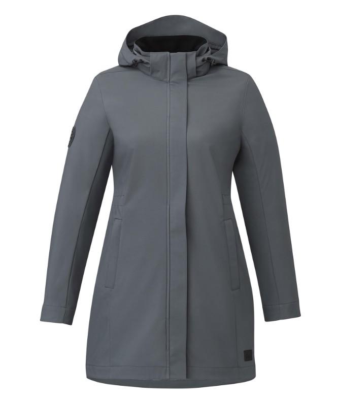 • This jacket features a three-layer water resistant, breathable fabric that keeps you warm and dry. Comfort details include brushed linings for the collar and pockets, and a chin protector on the front zipper. Taildrop back adds protection, while articulated sleeves and seam-free shoulder design provide freedom of movement. Adjust cuffs and hem for a custom fit. Features rugged materials like YKK® zippers and membrane-coated softshell fabric. The best softshell jacket for the work site includes safety features. We’ve designed the hem-adjustment elastic to stay inside the pocket, avoiding snagging hazards. Reflective piping on shoulders and across the back enhances visibility.
