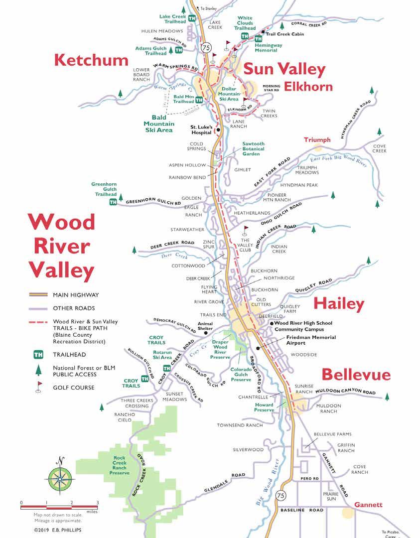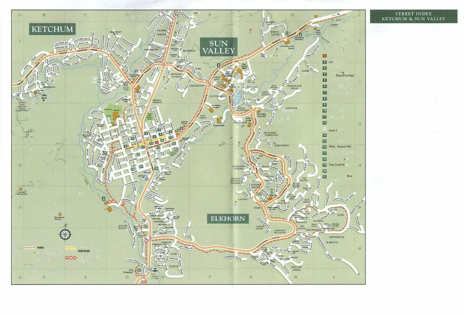 • In Ketchum, “Sun Valley Road” is also 3rd Street, running east all the way out to the Sun Valley Village. “Main Street” is also Highway 75. It’s also helpful to know that in Ketchum, the “Streets” run east/west, and “Avenues” run north/south.