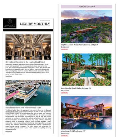 Every month we have expertly curated and designed e-newsletters, such as Luxury Newsletter, and Talking Real Estate newsletter, to keep you and your clients up to date with the current industry news and new listings.