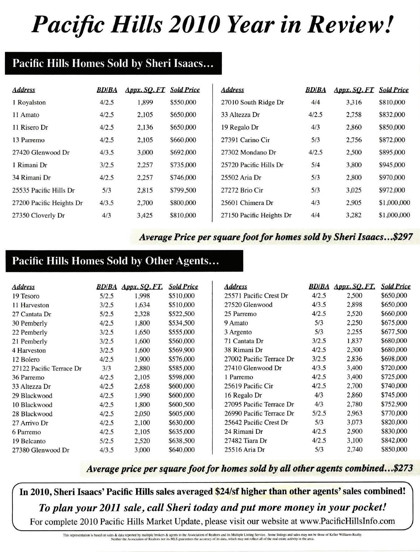 • Sheri Isaacs has completed approximately 800 Orange County transactions, with over 2100 Team Transactions.