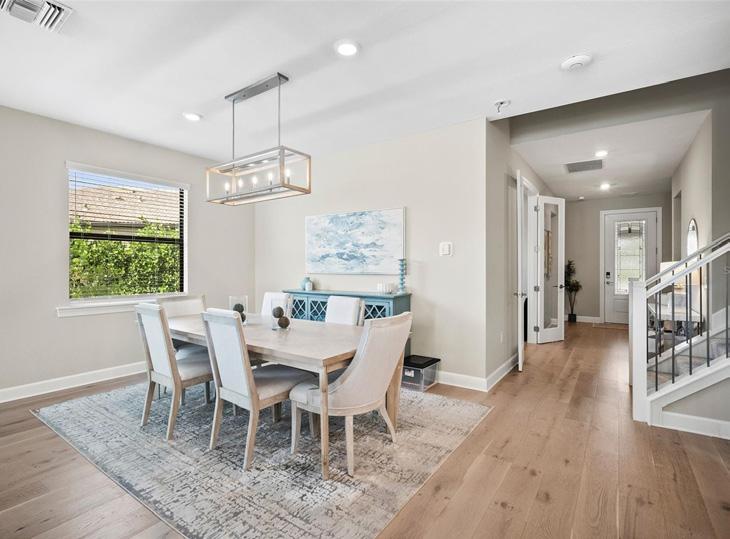 Experience luxury in this brand new, three-story residence in Dunedin. The home features high ceilings, a stone electric fireplace, four bedrooms, five bathrooms, an office, walk-in closets, en-suite bathrooms, and an elevator. Enjoy a spacious living area with balconies, a gourmet kitchen with stainlesssteel appliances, and a master suite with a soaking tub. The first floor offers a covered patio, large storage, and a laundry room equipped with GE appliances. Benefit from high ceilings, a 9-car garage, hurricaneimpact rated windows, a metal roof, and additional spaces for a gym or sauna. With no HOA, ample parking space for RVs and recreational vehicles, and proximity to marinas, restaurants, recreational activities, Clearwater Beach and Tampa International Airport, this home encapsulates a luxurious and convenient lifestyle.