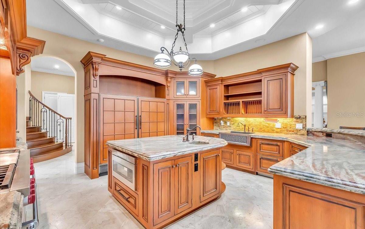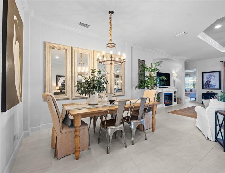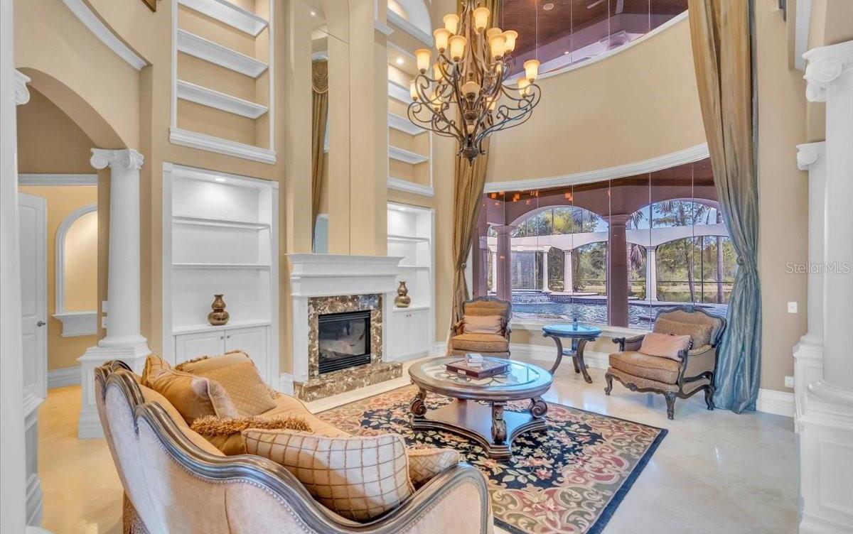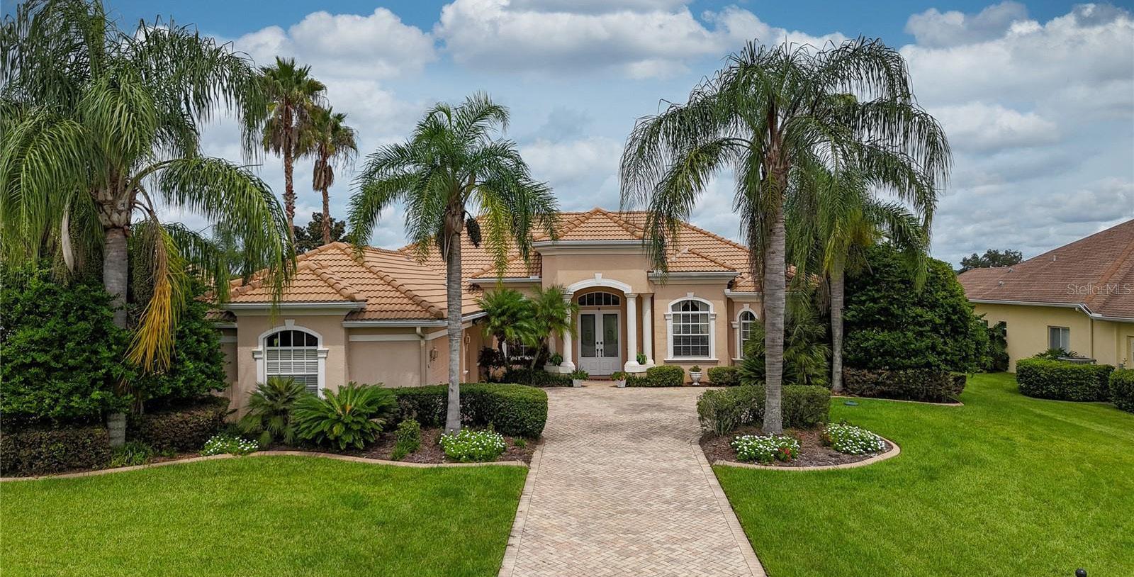 Enter this architectural masterpiece through new 2023 double doors! Dramatic 22’ ceilings, detailed ceiling design, and eye-catching chandeliers create ‘wow factor’ in every direction upon entering the grand foyer which opens to the formal living room and dining room. Built in 2007 with a new tile roof in August 2022 and new air conditioners in 2018 and 2019. Island kitchen boasts top of the line stainless appliances including 2023 Sub Zero refrigerator, Viking 6- burner/griddle gas range with hood, two 2022 Kitchen Aid dishwashers, and large walkin pantry. The first floor owner’s suite enjoys a gas twosided fireplace, sitting area, large walk-in closet, jetted tub, travertine walk-in shower, two separate sinks, and two private water closets. Theater room for watching your favorite movies and sports. Spacious office. Four additional bedrooms each have direct access to a bath. Located on the 10th fairway of Osprey South. Saltchlorinated pool/spa. Outdoor kitchen. Three car garage with Tesla charging station.