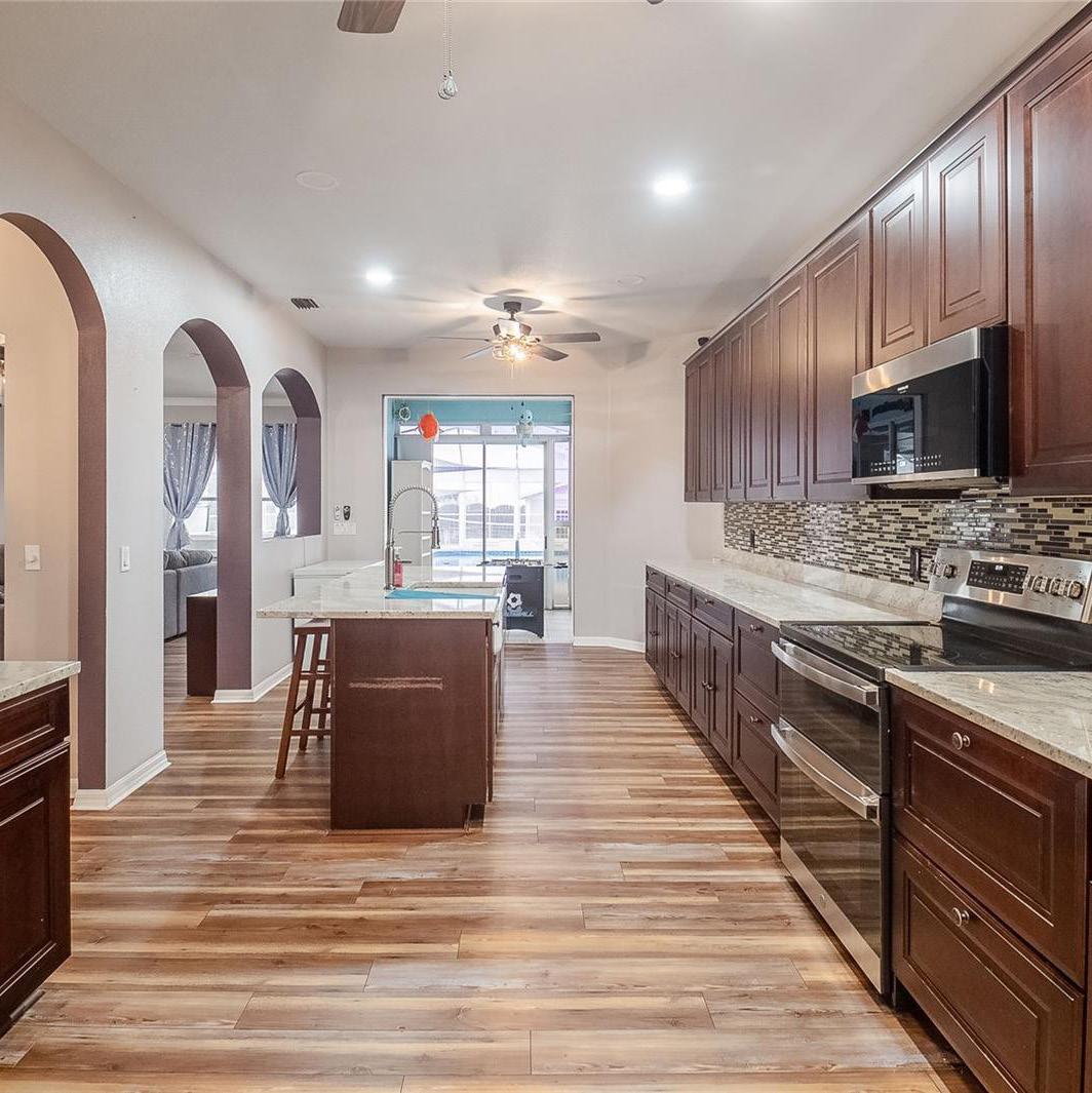 This exquisite custom home is located in the heart of Keystone/Odessa within the exclusive gated community of Pine Cove Estates. Set on a beautifully landscaped 1-acre lot, this 5-bedroom, 5.5-bathroom masterpiece features a dramatic beamed cathedral ceiling, stunning chandeliers, and a welcoming glass double door entry. The gourmet kitchen boasts quartz counters, a Thermador gas range, and a wine bar, perfect for entertaining. The upper level offers 3 bedrooms and a theater room with a 100” projection TV. Additional upgrades include a whole-house sound system, custom plantation shutters, central vacuum, and a heated pool with a spa. Outdoor living is a dream with a pavilion, outdoor kitchen, firepit, and private putting green. The home also includes a detached airconditioned garage, currently used as a gym. Located in an A-rated school district, this stunning residence offers the ultimate luxury lifestyle.