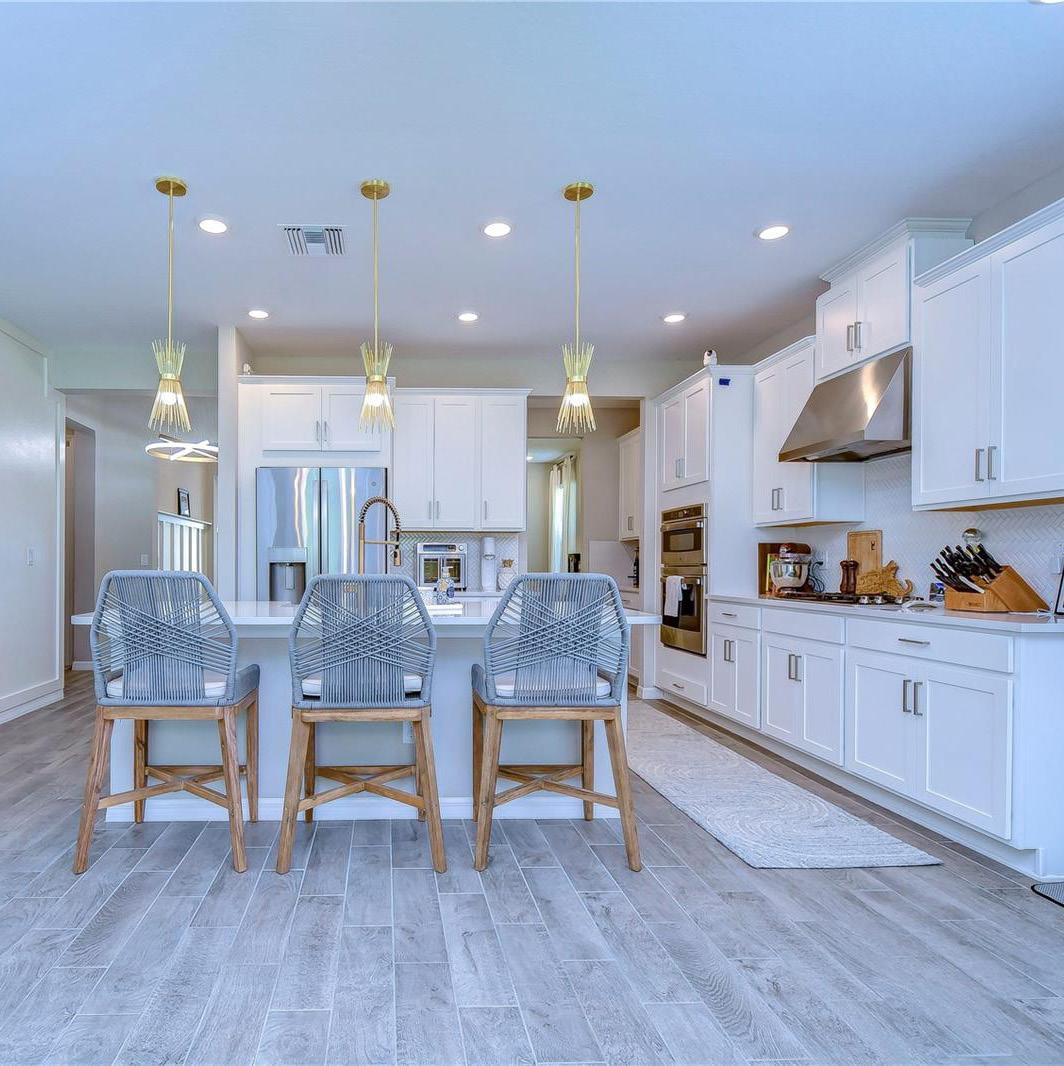 Prepare to be mesmerized by this spectacular waterfront oasis in the highly coveted MiraBay community. This 2021-built executive home sits on a spacious 100 ft lot along a salt-water canal. Entering the 4-bedroom, 3.5-bath home, you’ll be captivated by 15’ soaring ceilings and water views from every angle. The gourmet kitchen features quartz countertops, a farmhouse sink, double wall oven, and Timberlake maple cabinets. The owner’s suite offers elegant details, a resort-style bath, and amazing water views. The wrap-around lanai, with provisions for an outdoor kitchen, is perfect for entertaining. MiraBay provides resortstyle amenities, and this home includes pilings for a private dock and boat slip—schedule your private showing today!