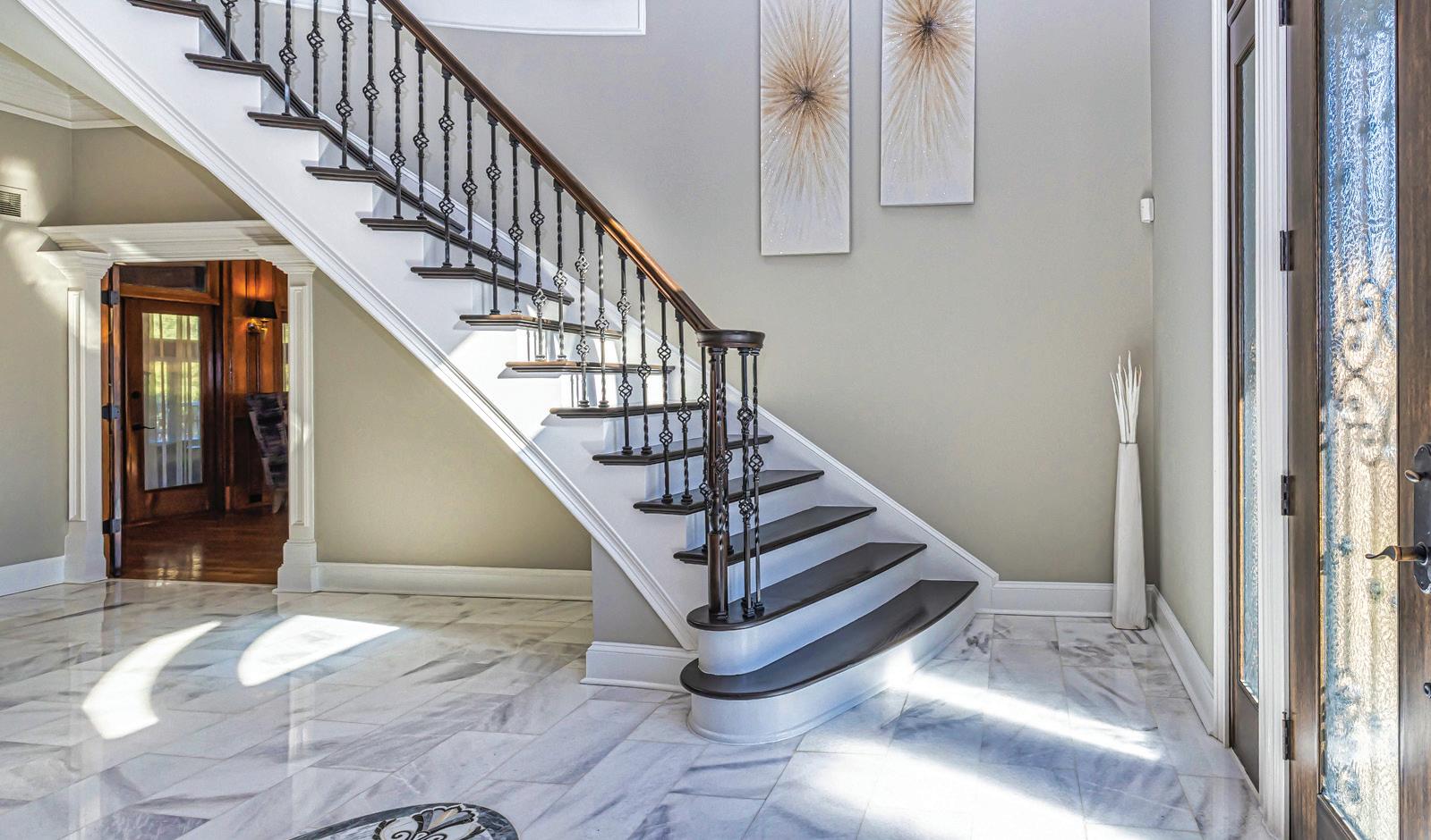 This European estate, situated on over 4 gated acres in Tyrone, Georgia, has been meticulously renovated by skilled craftsmen to blend sophistication with everyday comfort. The long, tree-lined driveway leads to professionally landscaped gardens that enhance the home’s stately curb appeal. Double solid wood doors open to a marble foyer featuring a sweeping curved staircase and a sparkling crystal chandelier, setting the tone for the refined interiors beyond.