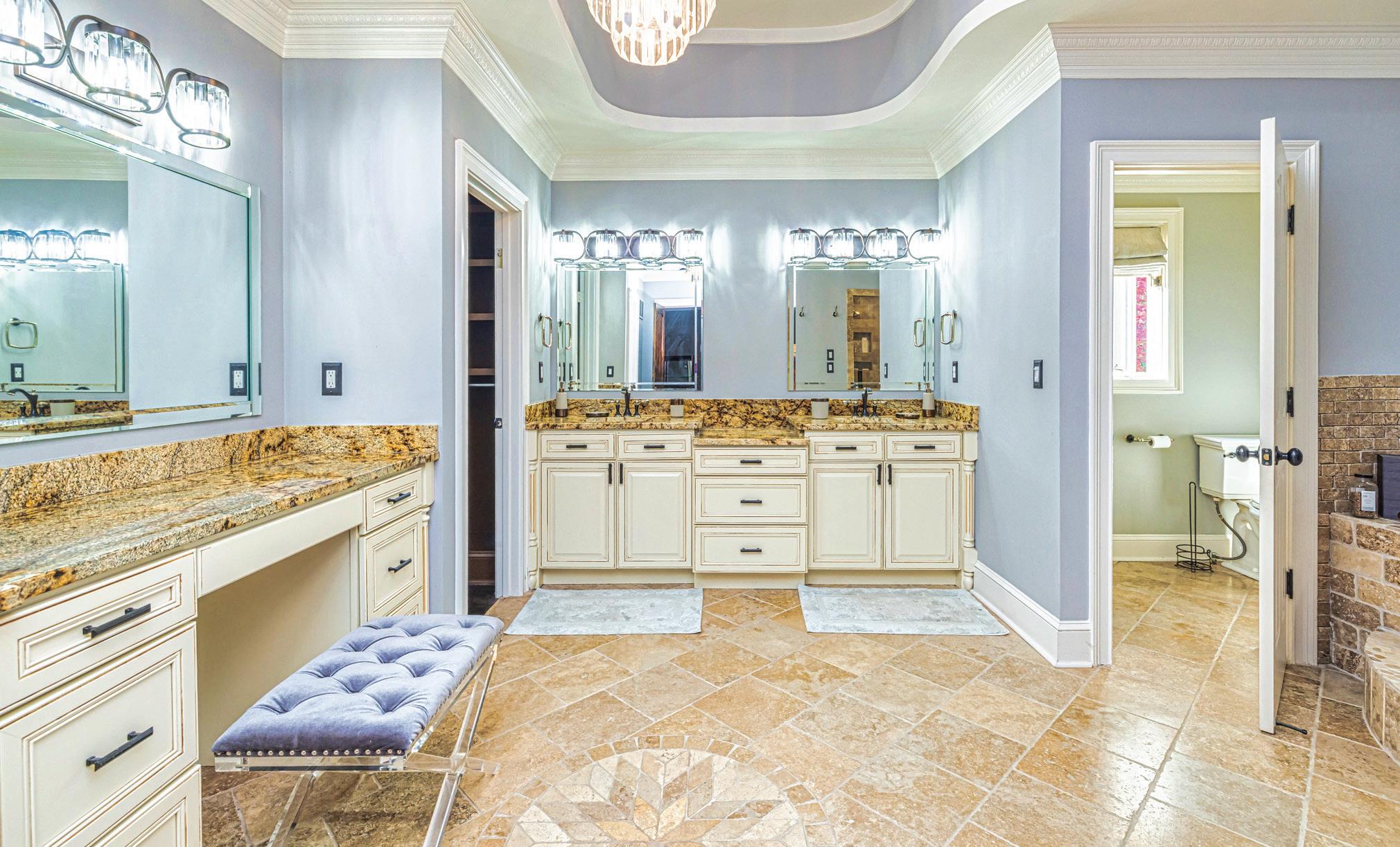 The primary suite features a tray ceiling and a bay window overlooking the scenic rear grounds. Its luxurious en-suite bathroom includes a garden tub, steam shower, dual custom closets, and a private toilet closet with bidet. An adjoining woodpaneled office with built-in bookcases adds both function and charm. At the center of the home, a four-seasons lanai—climatecontrolled for year-round enjoyment—includes an indoor pool, hot tub, sauna, full bar, wine closet, and a full bath and changing room with a steam shower.