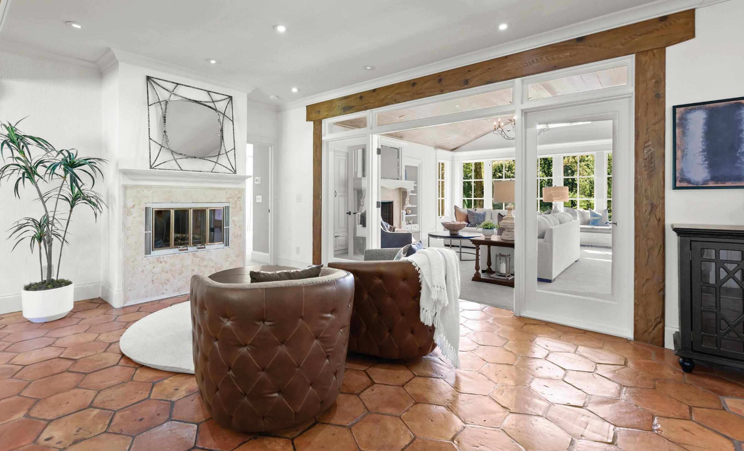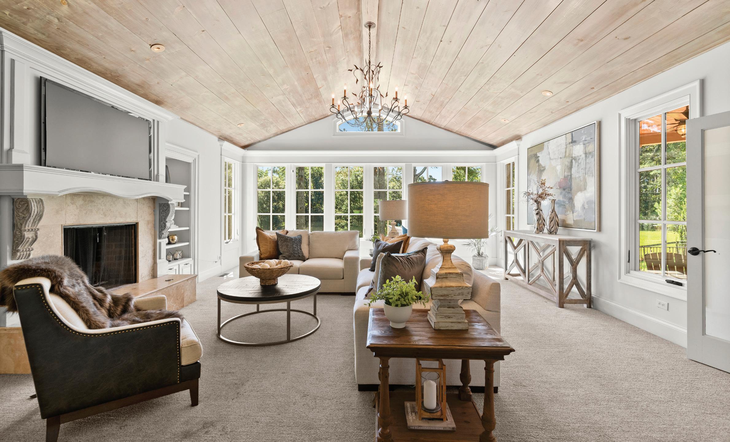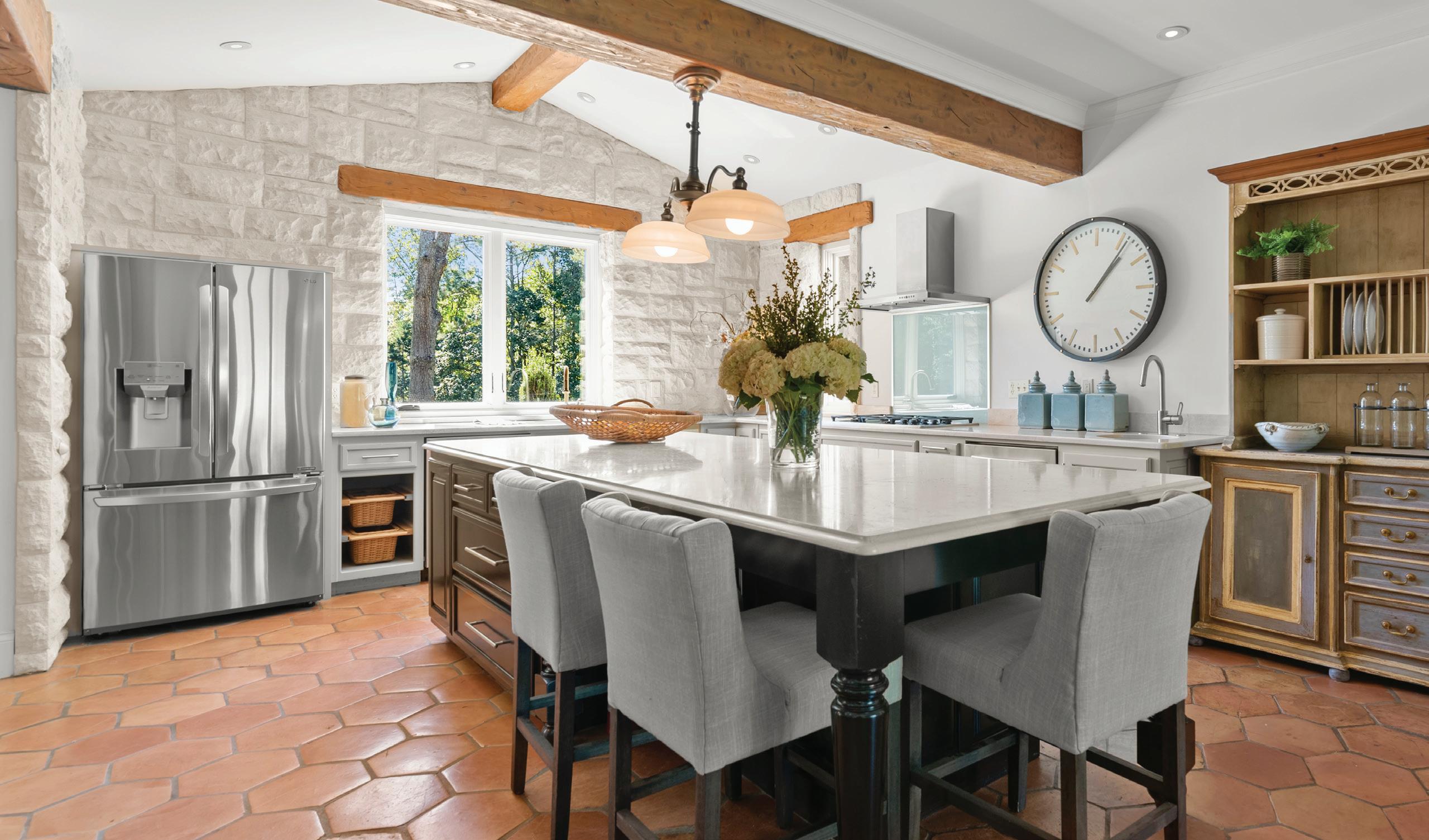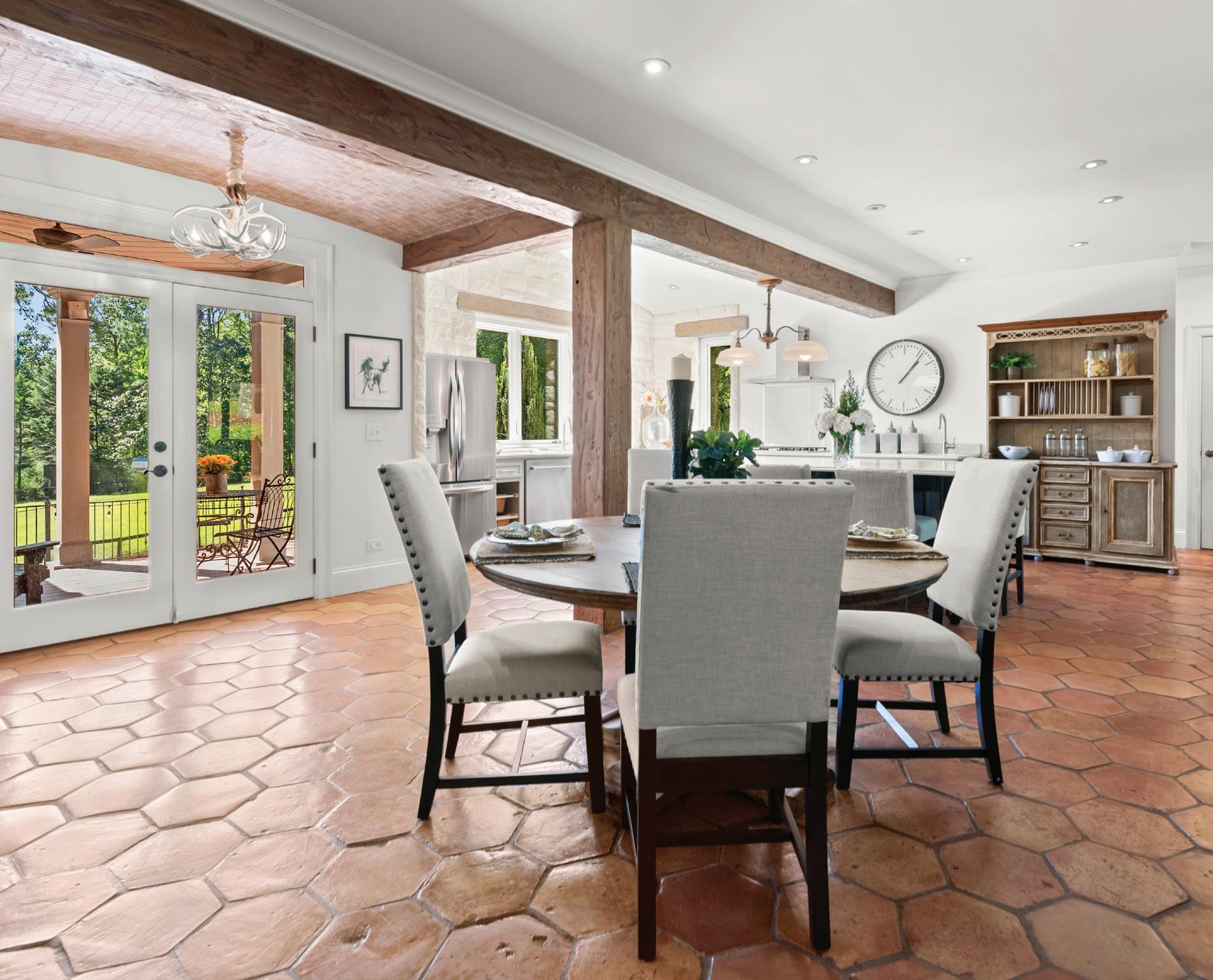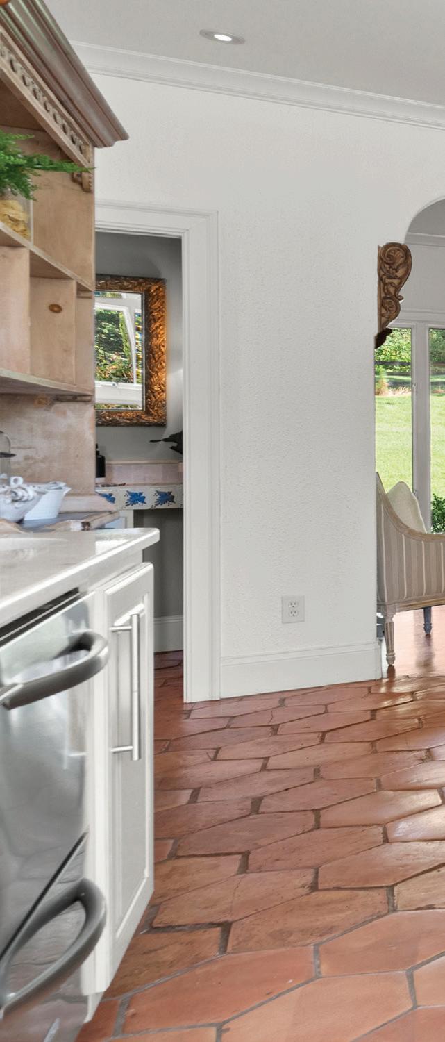 The charming painted brick home is filled with character and warmth, seamlessly combining rustic design with upscale finishes. The main level showcases vaulted ceilings with exposed wood beams, Mexican tile floors, and casement windows that frame sweeping pastoral views. The chef’s kitchen is the heart of the home, boasting marble countertops, double Dacor ovens, a 5-burner gas range, LG French door refrigerator, and a striking antique hutch centerpiece. A spacious dining room makes entertaining effortless, while the main-level owner’s suite serves as a true retreat with a spa-like bath, custom walk-in closet with attached laundry, and serene views of the rolling acreage.