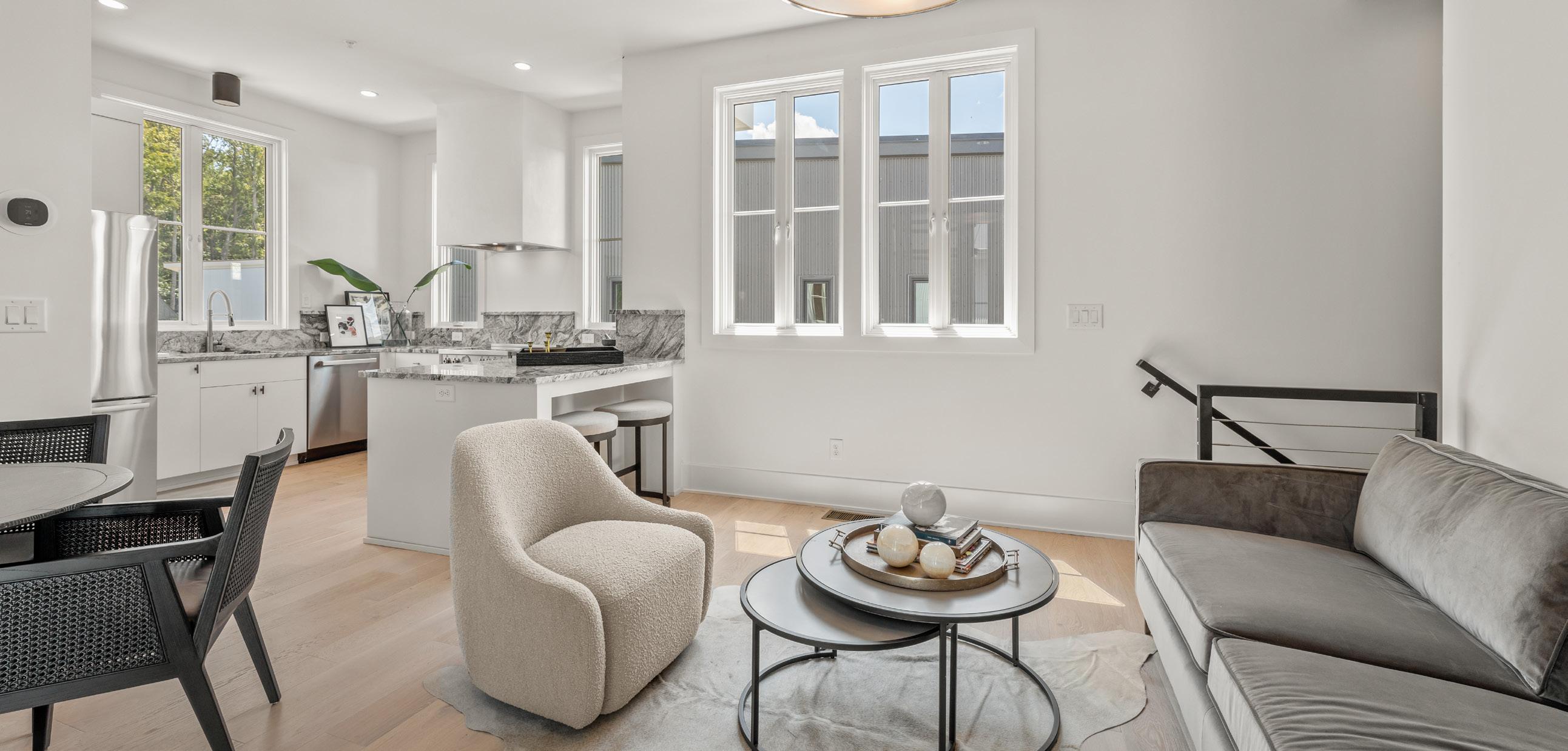 Second Floor: The combined living room and kitchen provide an open-concept space ideal for entertaining. A cozy corner dining area adds charm and functionality.