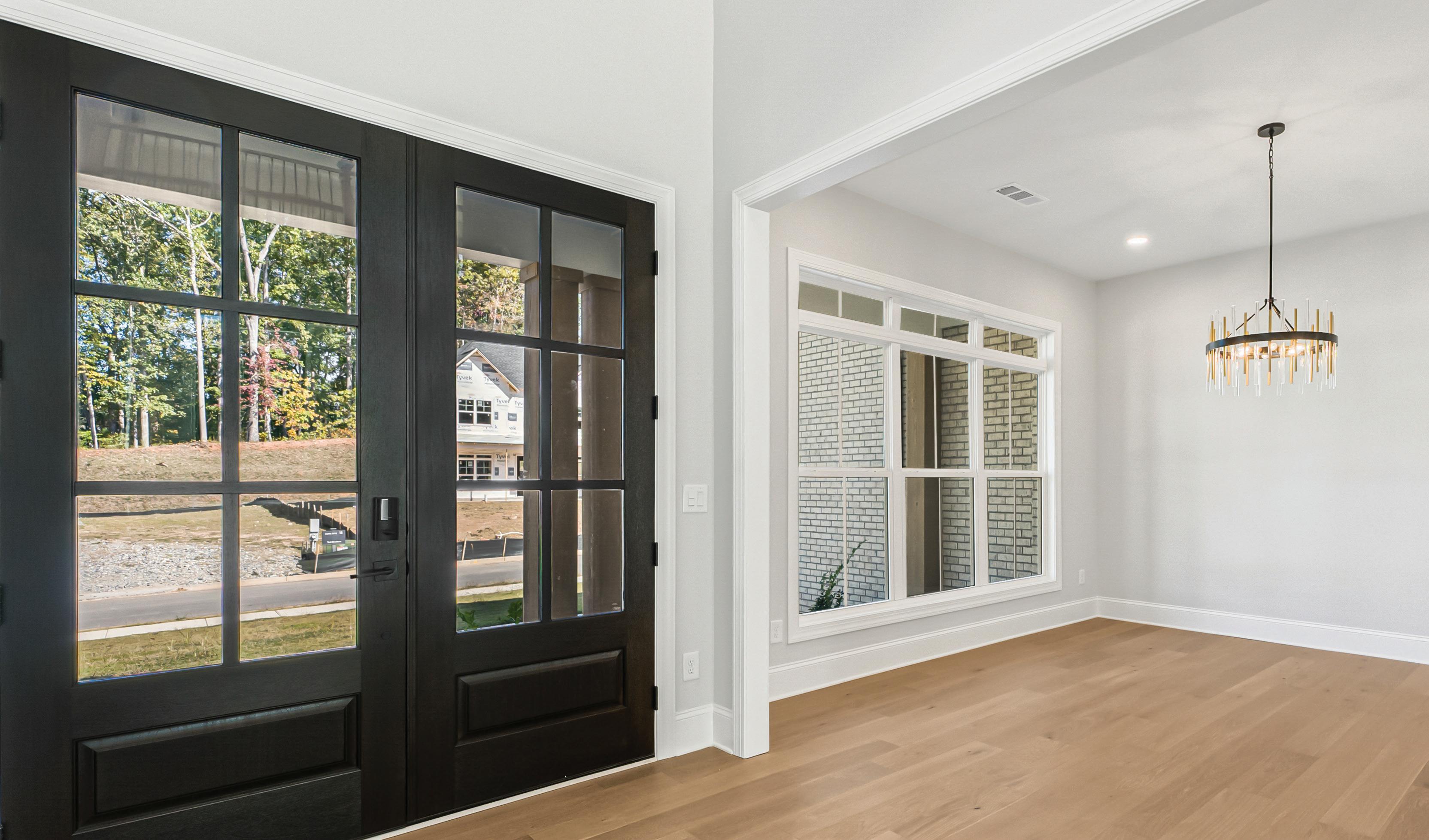 Set within Brookmeade, a coveted Toll Brothers community, this striking brick residence combines timeless elegance with quiet privacy on a serene, nearly cul-de-sac street. A wide, covered front porch opens to a soaring foyer with a grand catwalk and a wall of picture windows framing wooded views and filling the home with natural light. A private office and refined dining room flank the entry, connecting seamlessly to the fireside family room through a well-appointed butler’s pantry and bar.
