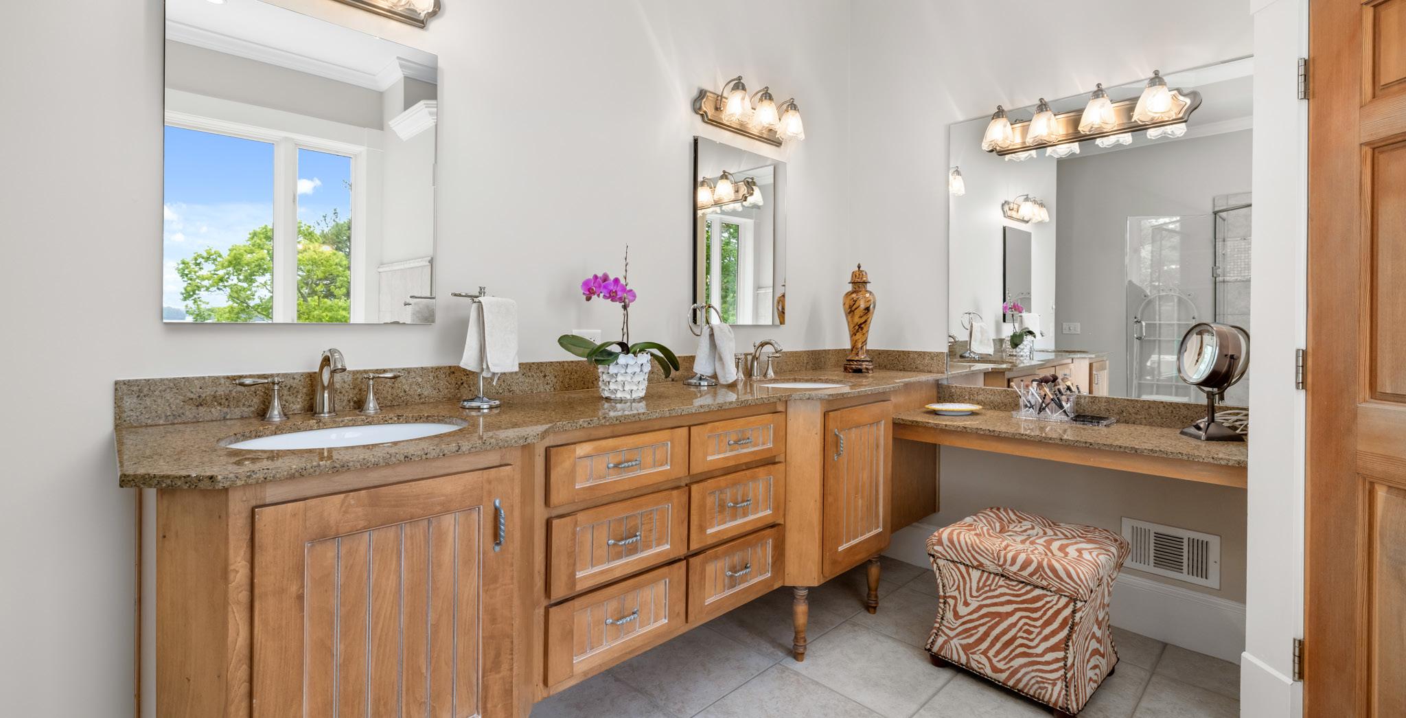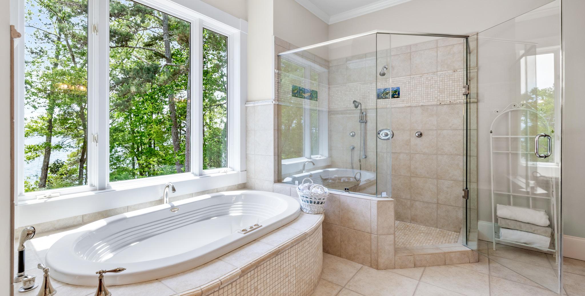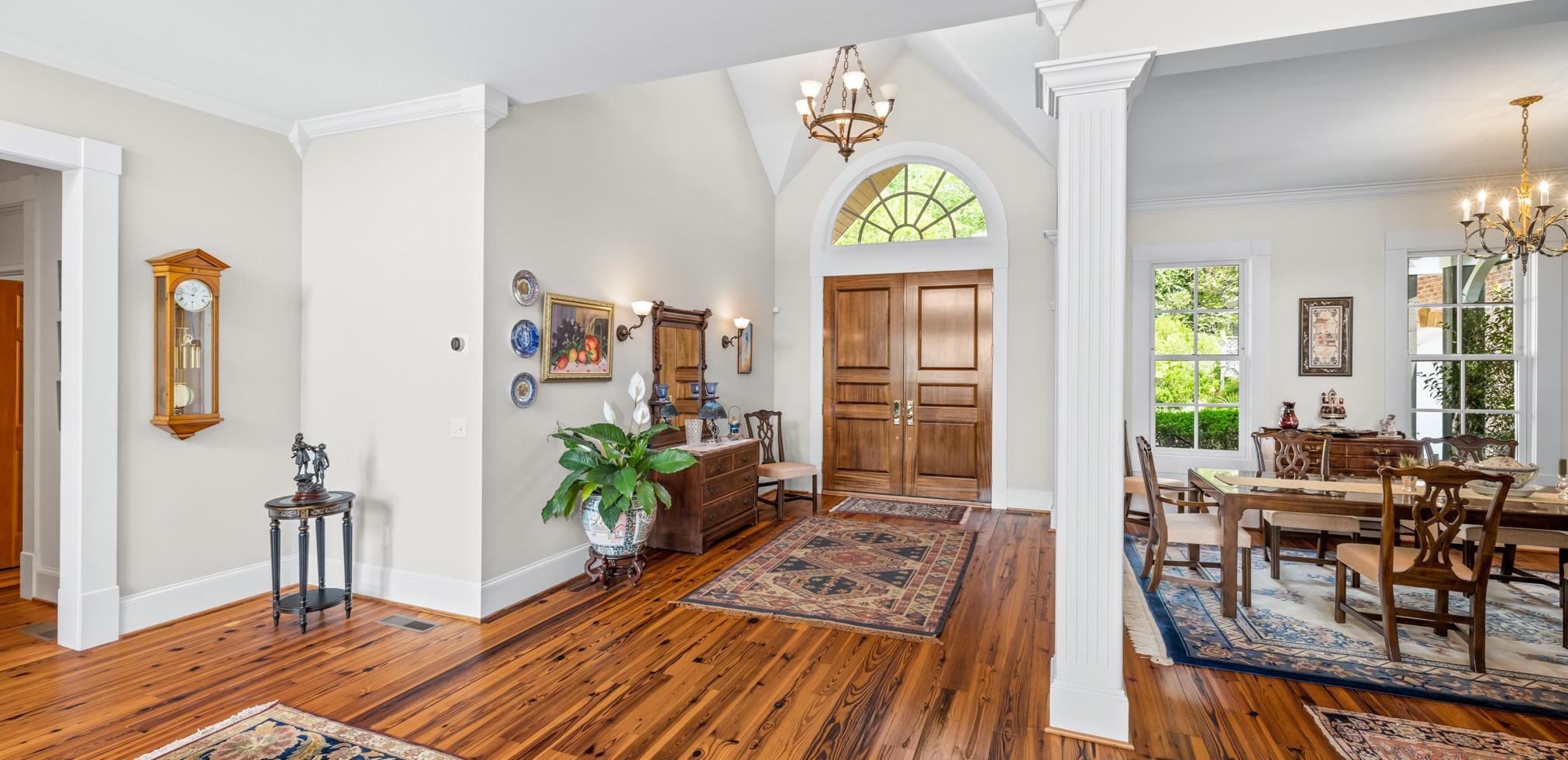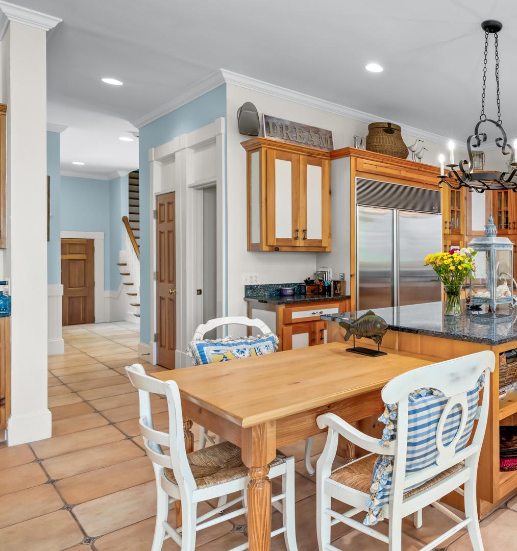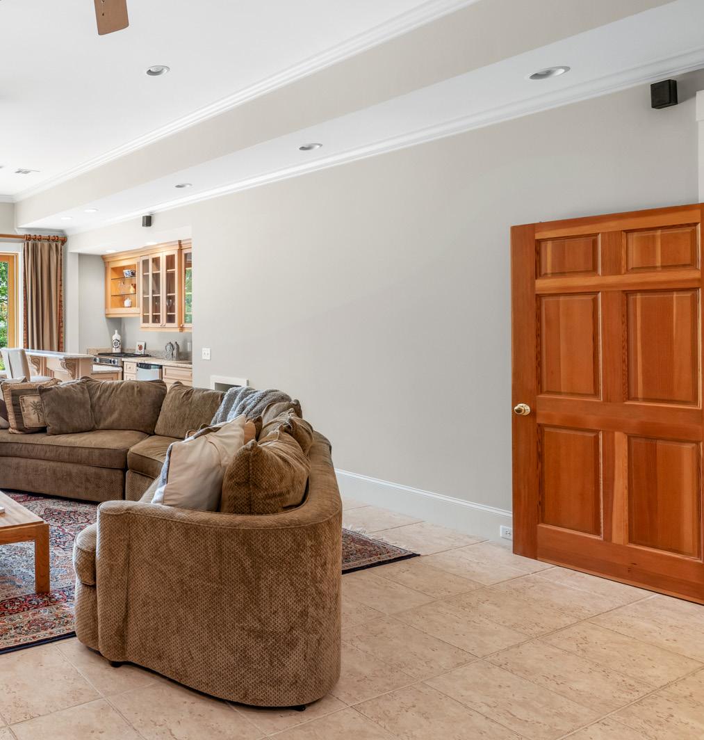 Outstanding construction of Beachwood Cottage is evident with the finest of woods, Kolbe & Kolbe windows, design elements and materials. Heart pine floors adorn the first level with 18'' square tiles in the remaining spaces. Eleven foot ceilings, five foot hallways and staircases are impressive features. The flat winding paver driveway and large courtyard enhance the grand entrance and lead to a twocar garage plus another two-car garage on the terrace level. Magnificent oversized custom mahogany double doors greet you at the entrance and when opened offer the first awesome view of the lake through massive cathedral windows in the great room. Arched pine ceiling and antler chandelier give a grandiose quality to this space. One can peek through the double-sided fireplace into the adjacent keeping room, highlighted by the natural stacked stone and wood mantel see-through fireplace.