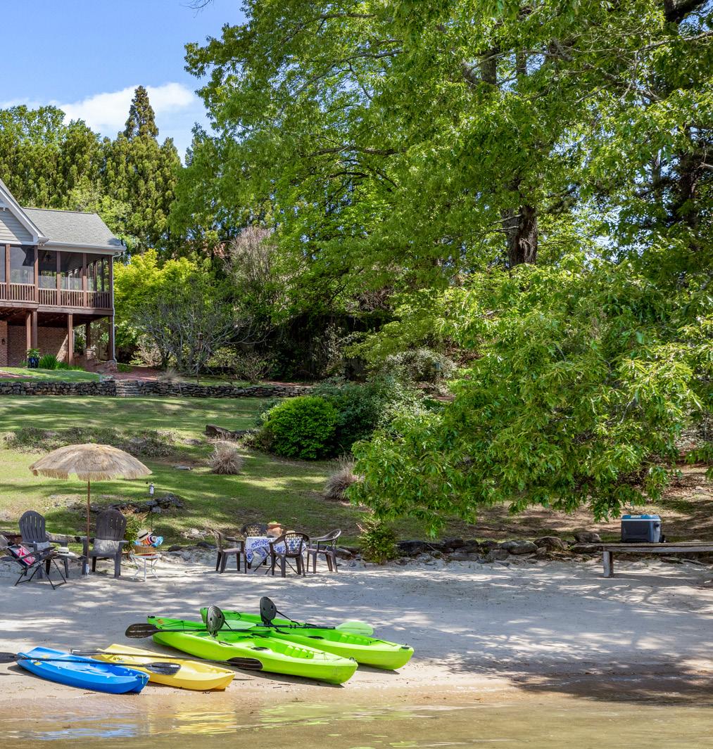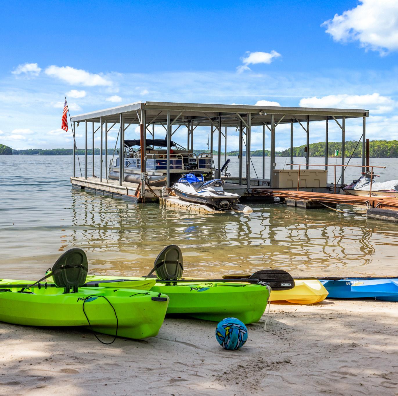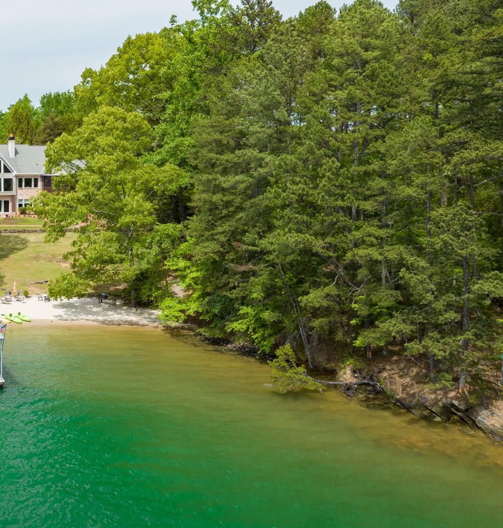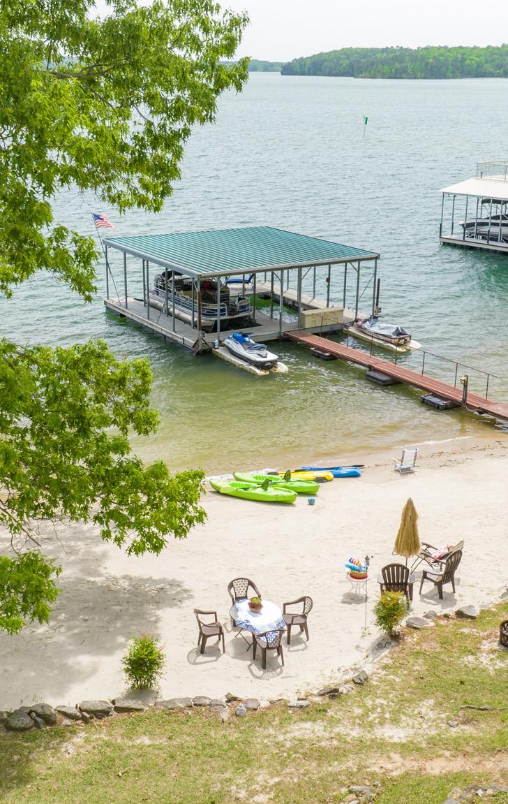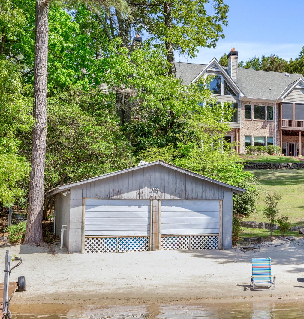 8430 Lanier Drive known as Beachwood Cottage is a unique property located on the end of "The Peninsula" in Deer Creek Shores and is rich with character and charm. One can enjoy living year round on the open water of beautiful Lake Lanier. Sitting on 1.3 acres, the property includes a rare secluded natural sandy beach. A small cove formed by woods and a rocky point shelters the beach, dock and swimming area. Following a gentle walk from the house, one can wiggle toes in the sand or listen to waves lapping on the shore. Kids can wade into the lake, swim or launch their kayaks. Seeing bass and brim swimming in the clear water invites a cast or two. A concrete block boathouse on the beach provides convenient storage for lake gear.