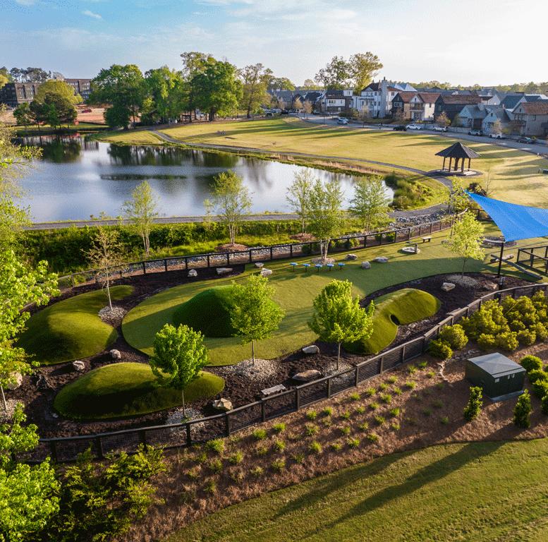 The residential neighborhood at Trilith comprises the largest geothermal community in the United States, with 51% of the development dedicated to green space that is currently home to more than 1,000 trees. Upon completion, residents will have access to 15 miles of nature trails, 54 acres of forest, 19 superbly landscaped parks and one of the most sophisticated and welcoming dog parks in the world.