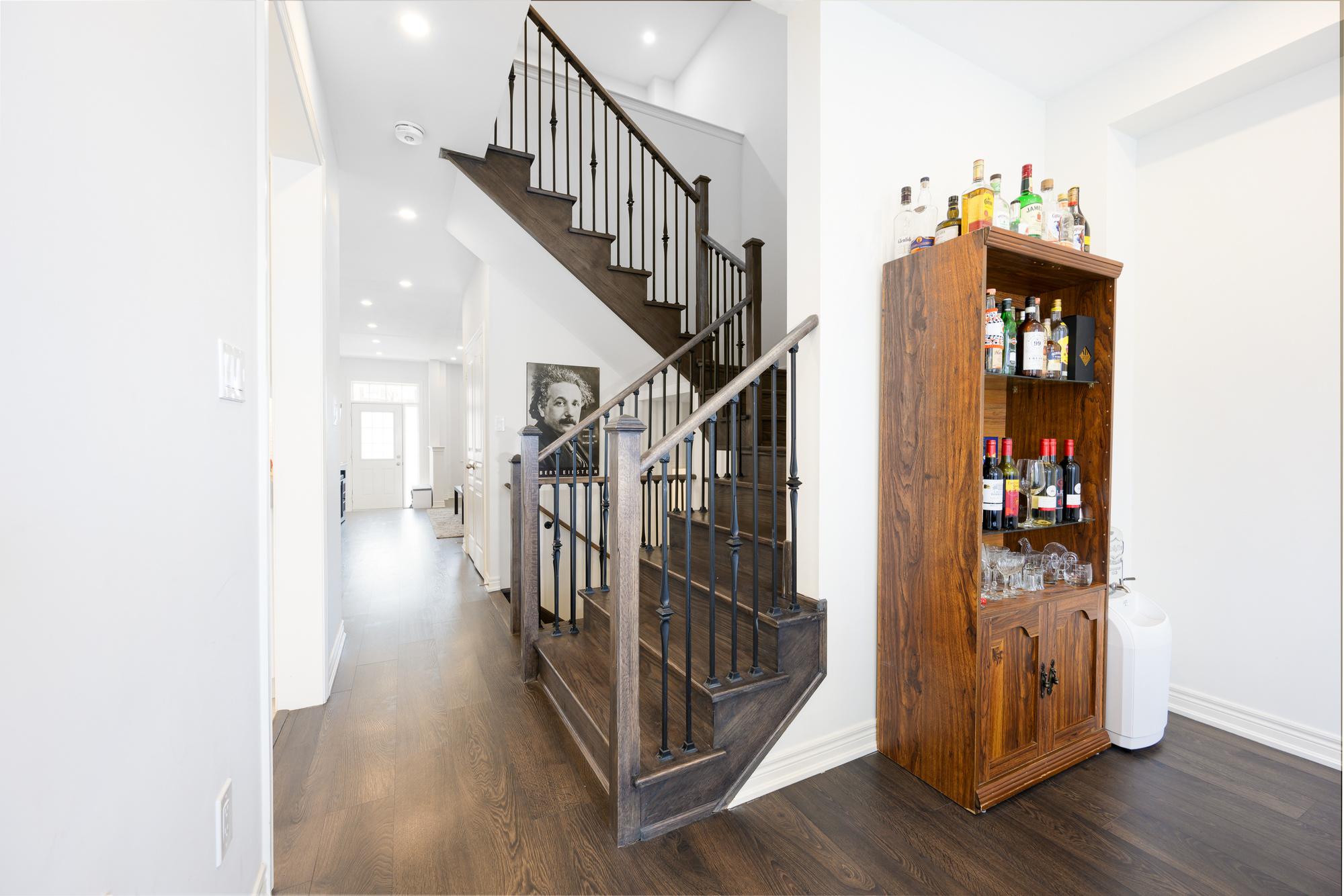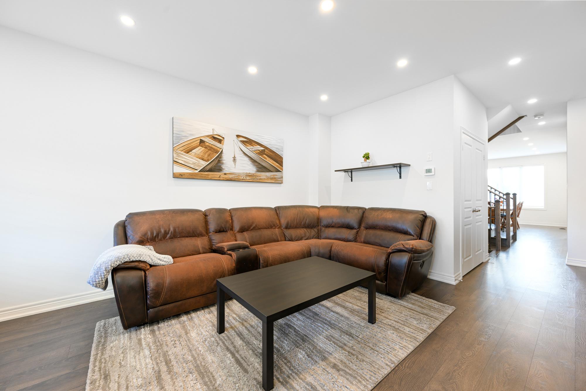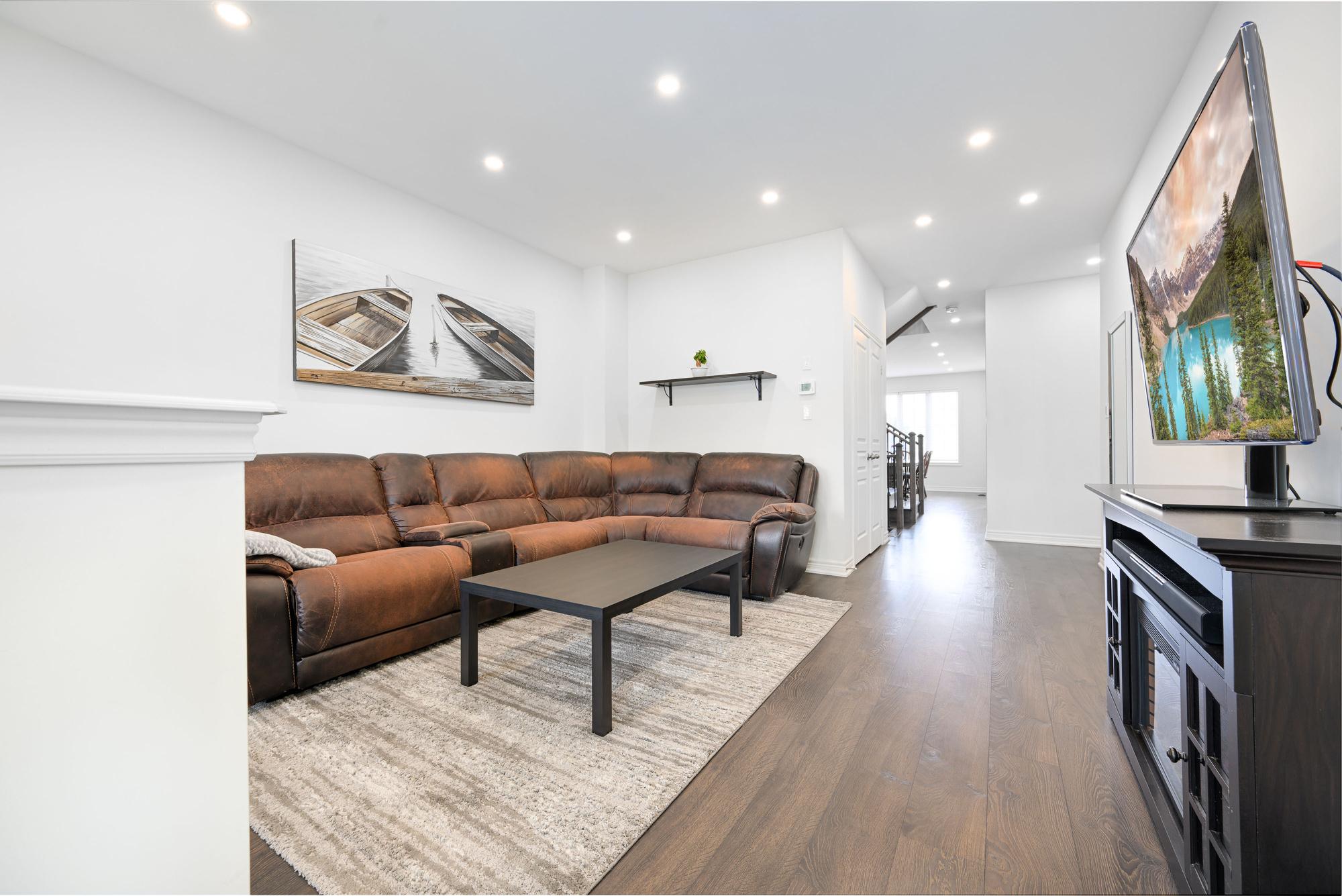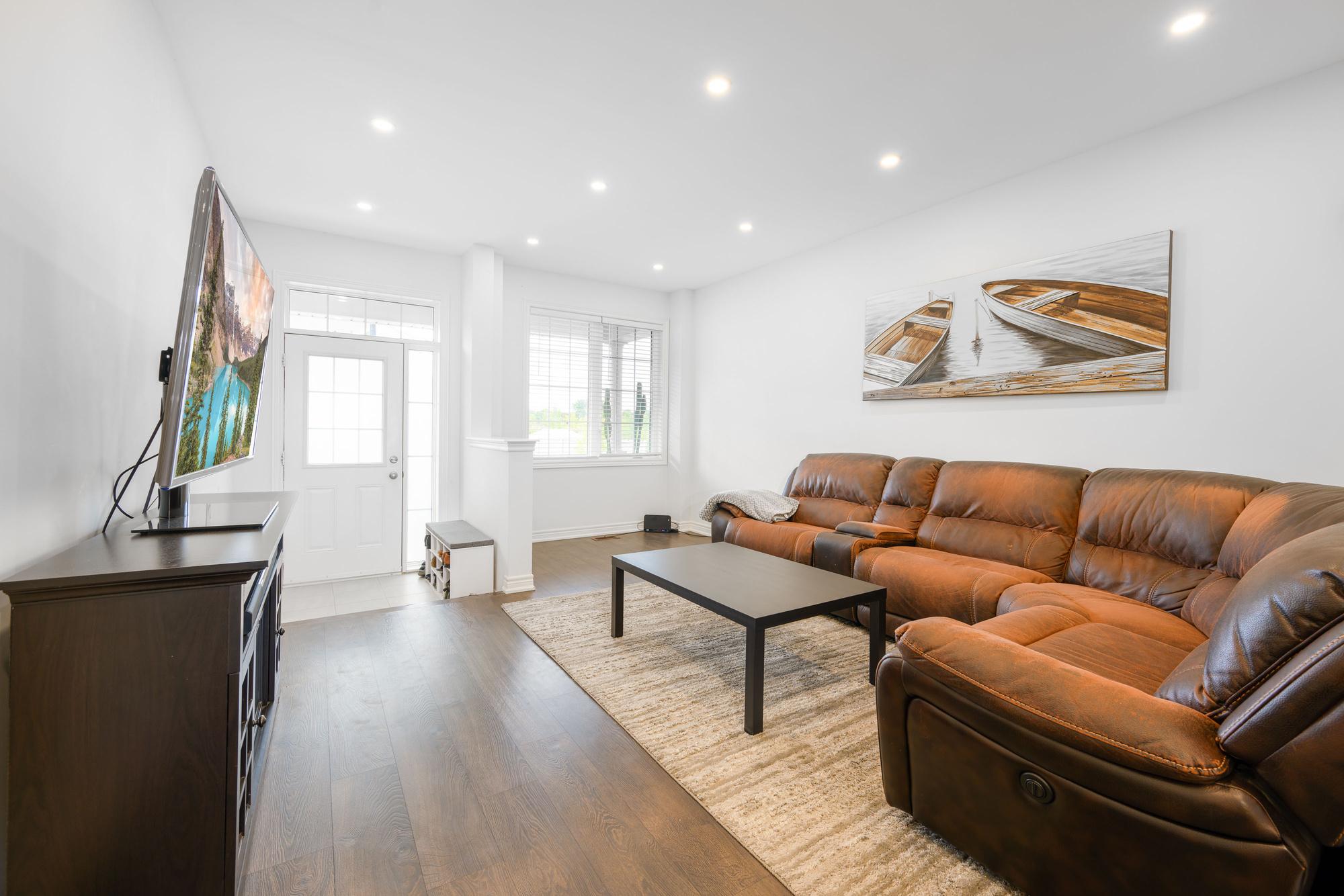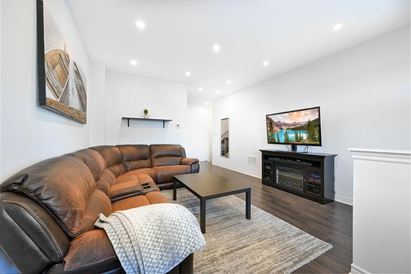 Must see townhome in the prime location of Waterdown, exquisite from top to bottom! Very spacious home nestled in a quiet, private court. More than 2,005 square feet of total living space with beautiful landscaped yards. Enter into the large bright living room with 9ft ceilings, pot lights, gorgeous dark laminate hardwood floors and a spacious powder room. Bright kitchen with double sink and built in stainless steel appliances. Large breakfast nook with glass door that walks out onto the new patio and large yard. On the second level enter into the primary bedroom suite with an oversized walk in closet and bright 4pc ensuite. Laundry room is conveniently located upstairs as well as two large bedrooms connected by a 4pc Jack and Jill washroom. Bedrooms have large windows with tons of natural light as well as new ceiling fans installed just last year. Large basement with cold cellar and a ton of storage space. Convenient access to the downtown, grocery stores, retail shops, trails and much more. *Extras* Upgraded ceilings, window coverings, deep freezer and gym equipment in the basement included at your discretion.