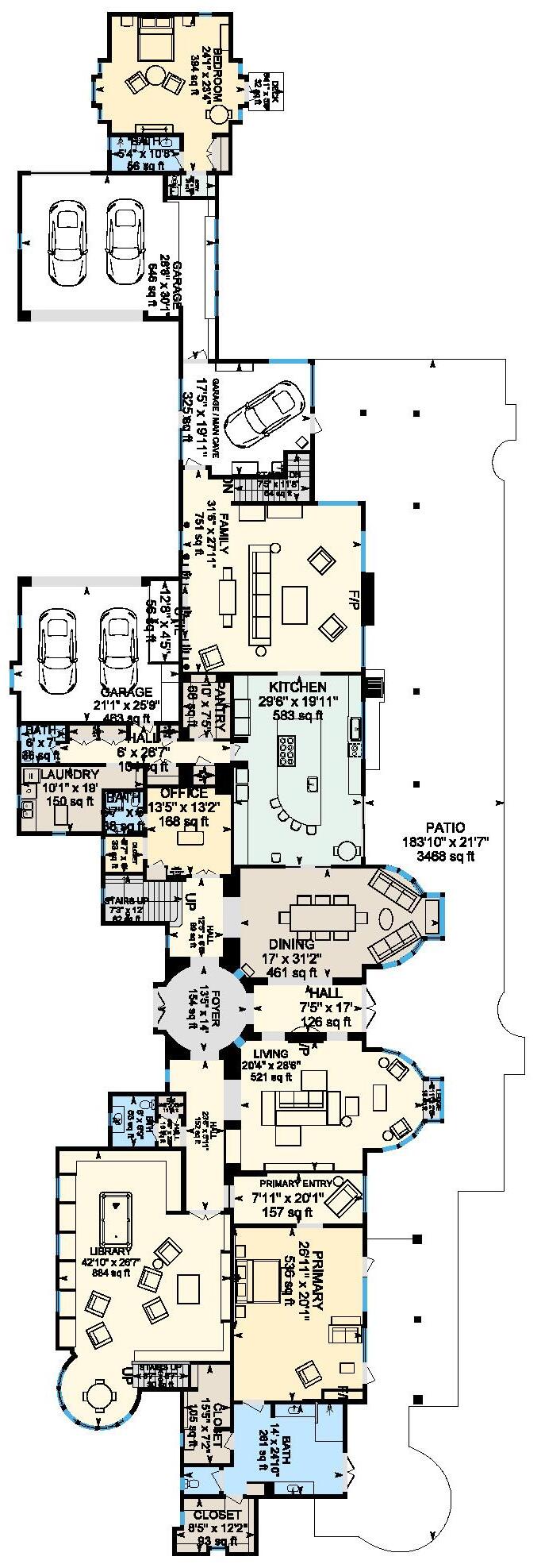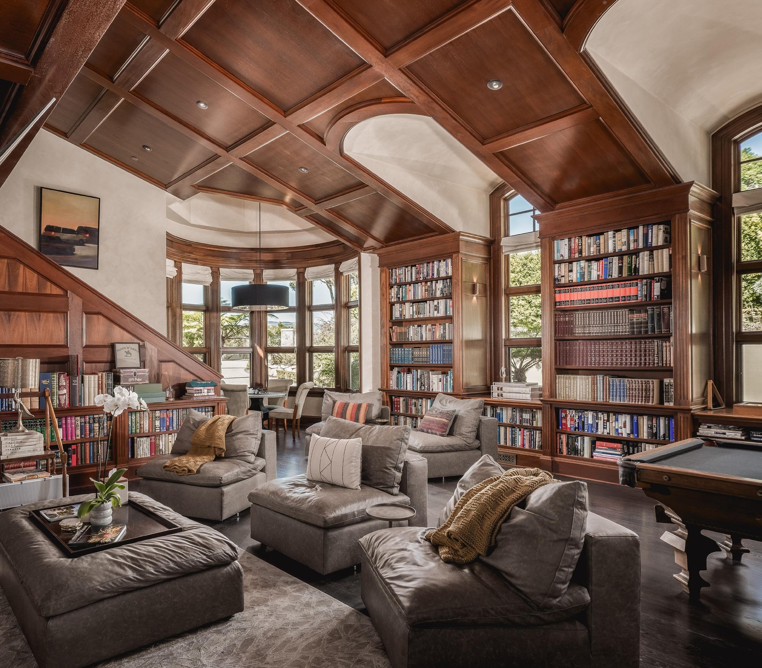 Elegant architectural details—arched passages, sliding wrought-iron and glass barn doors, and folding glass walls—enhance the home’s seamless connection to its surroundings. The main level also showcases a dramatic two-story mahogany library with an office and ocean view terrace, a one bedroom one bath guest suite, as well as the primary suite. The primary bedroom opens to a private patio with a spa, outdoor shower, and features a Venetian plaster fireplace + sitting area, and two walk-in closets. An intimate sanctuary for refined coastal living.