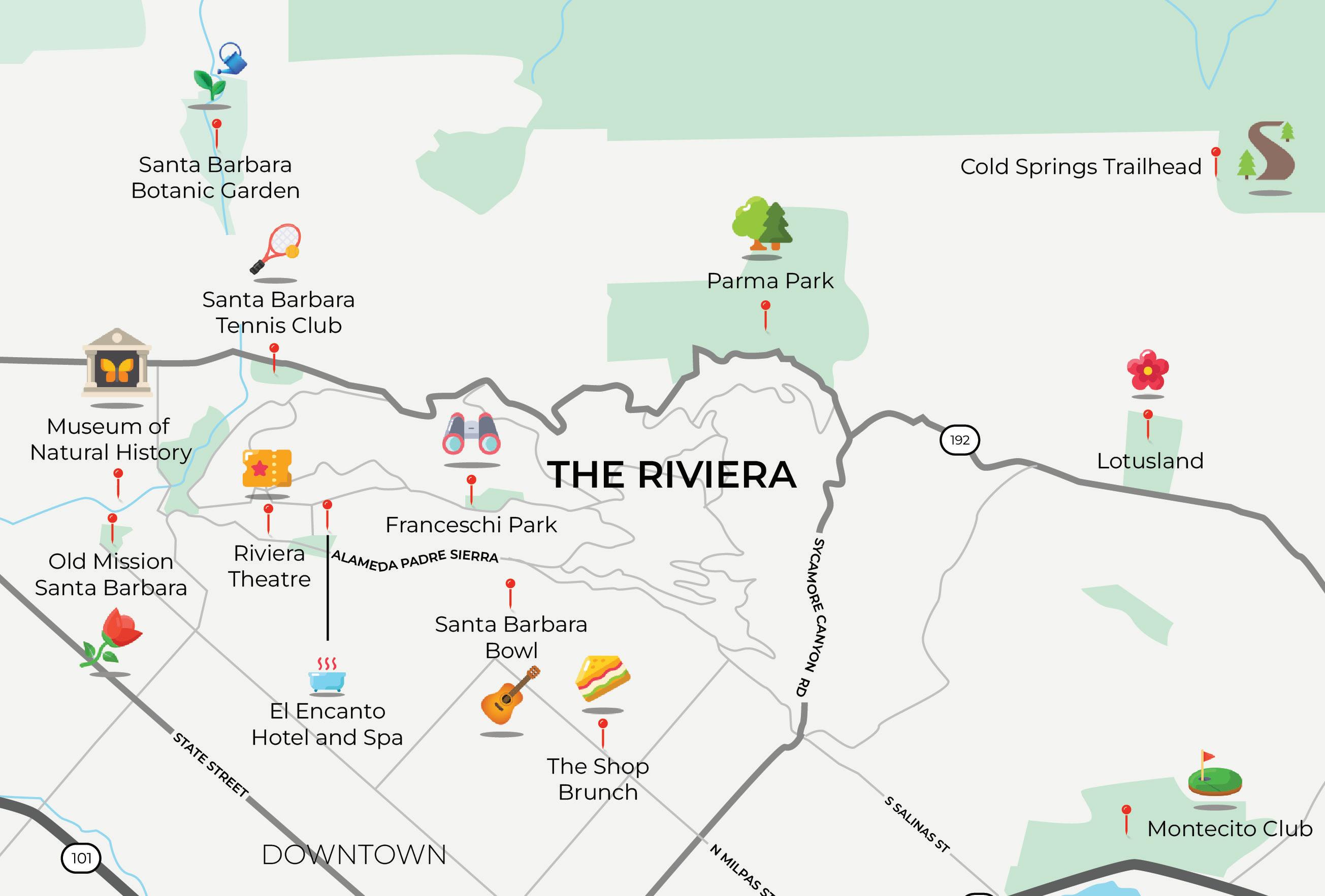 to outdoor activities. Residents can enjoy hiking trails, including those in nearby parks like Franceschi Park, which offers some of the best vantage points in the city. The Riviera Theatre and El Encanto Hotel also contribute to the neighborhood’s cultural and social appeal, making it one of Santa Barbara’s most prestigious places to live.