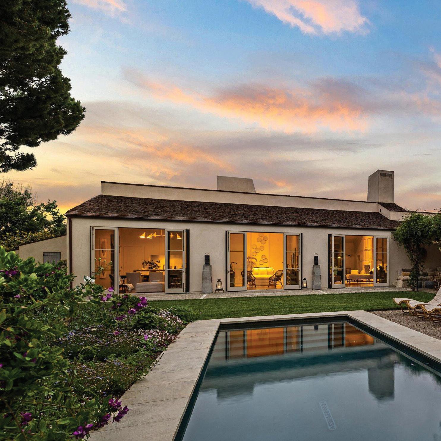Meticulously redesigned gardens, manicured lawns, and strategic lighting fixtures showcase the exquisite outdoor space.