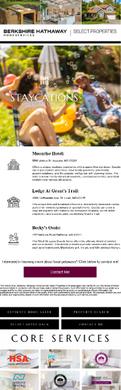 This design has three recommendations for getaway locations in the St Charles area and a “contact me” button.