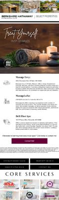This design is front and back to recommend spas in the area There is a spot on the back for agent personalization and mailing information Additionally, the QR code encourages readers to reach out.
