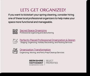 This design is front and back to recommend professional organizers/cleaners in the area There is a spot on the back for agent personalization and mailing information Additionally, the QR code encourages readers to reach out