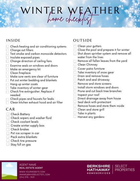 This design has 3 pages including one cover page to showcase the topic of the information, a page with winter safety tips, and the final page which allows every agent to add their own personalization