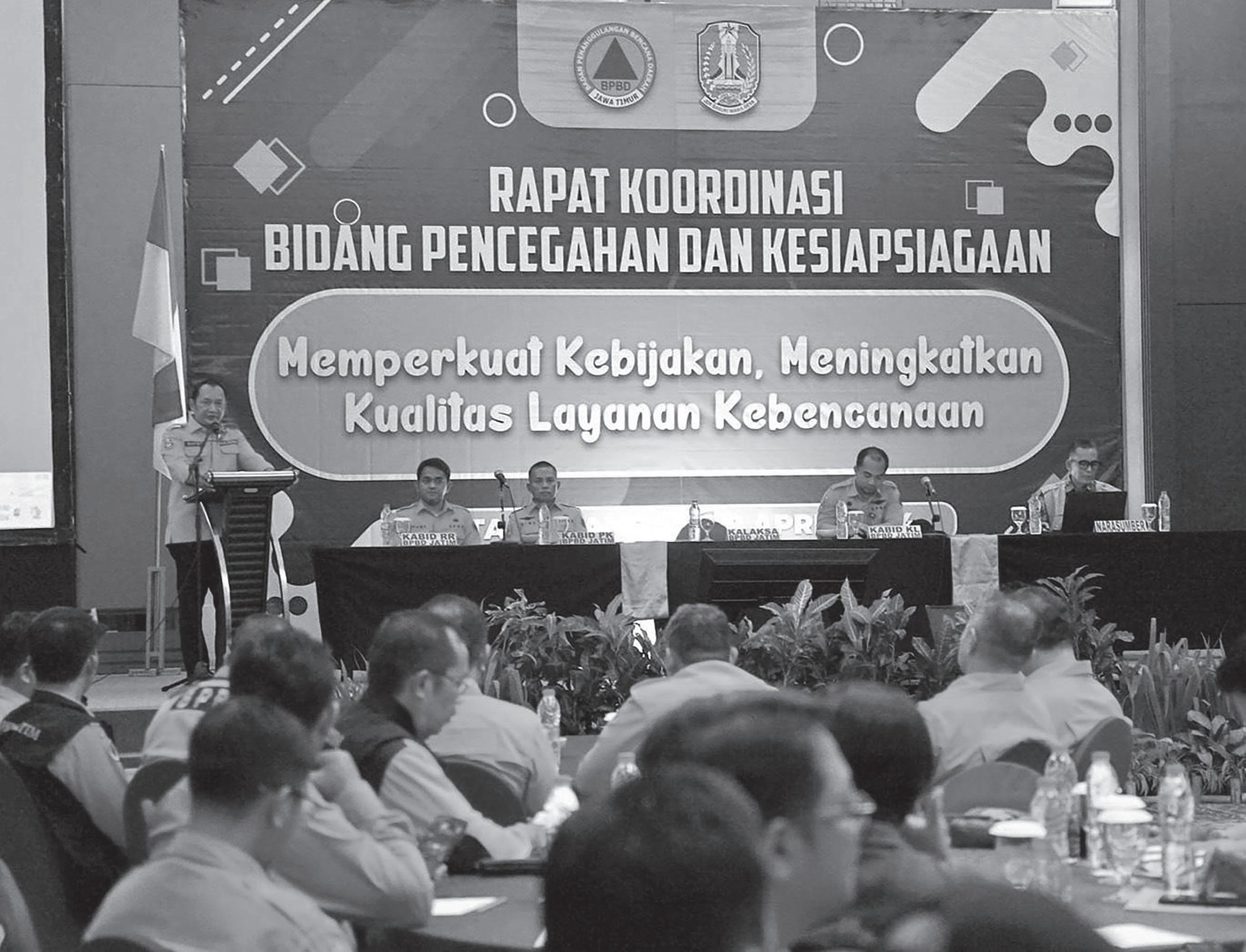 BPBD Jatim menggelar Rakor Bidang Pencegahan dan Kesiapsiagaan di Hotel Harris, Kota Malang pada Senin (29/4) dan Selasa (30/4). Rakor ini menindaklanjuti Rakornas PB di Bandung pada 23-24 April 2024 lalu.