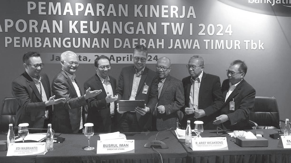 Pemaparan tersebut dihadiri oleh Direktur Utama bankjatim, Busrul Iman, Direktur Mikro, Ritel, dan Menengah bankjatim, R. Arief Wicaksono, Direktur IT & Digital bankjatim, Zulhelfi Abidin, Direktur Keuangan, Treasury & Global Services bankjatim, Edi Masrianto, Direktur Manajemen Risiko bankjatim, Eko Susetyono, dan Direktur Operasi bankjatim ,Arif Suhirman di Hotel Alila Jakarta, Direktur Utama bankjatim, Busrul Iman mengungkapkan mengawali tahun 2024 di tengah kondisi yang dinamis dan dalam usaha untuk memenangkan kompetisi, manajemen bankjatim telah melakukan review atas beberapa hambatan sekaligus juga melanjutkan capaian selama 2023 kemarin yang terbagi dalam 5 besaran. Pertama, akuisisi pada market bisnis yang lebih luas yaitu pada sektor riil/produktif terutama untuk bisnis kredit di segmen mikro, kecil & menengah. Kedua, penguatan captive market yaitu segmen konsumer melalui program retensi, akuisisi sampai dengan turunan di captive market tersebut sebagai satu kesatuan eko-