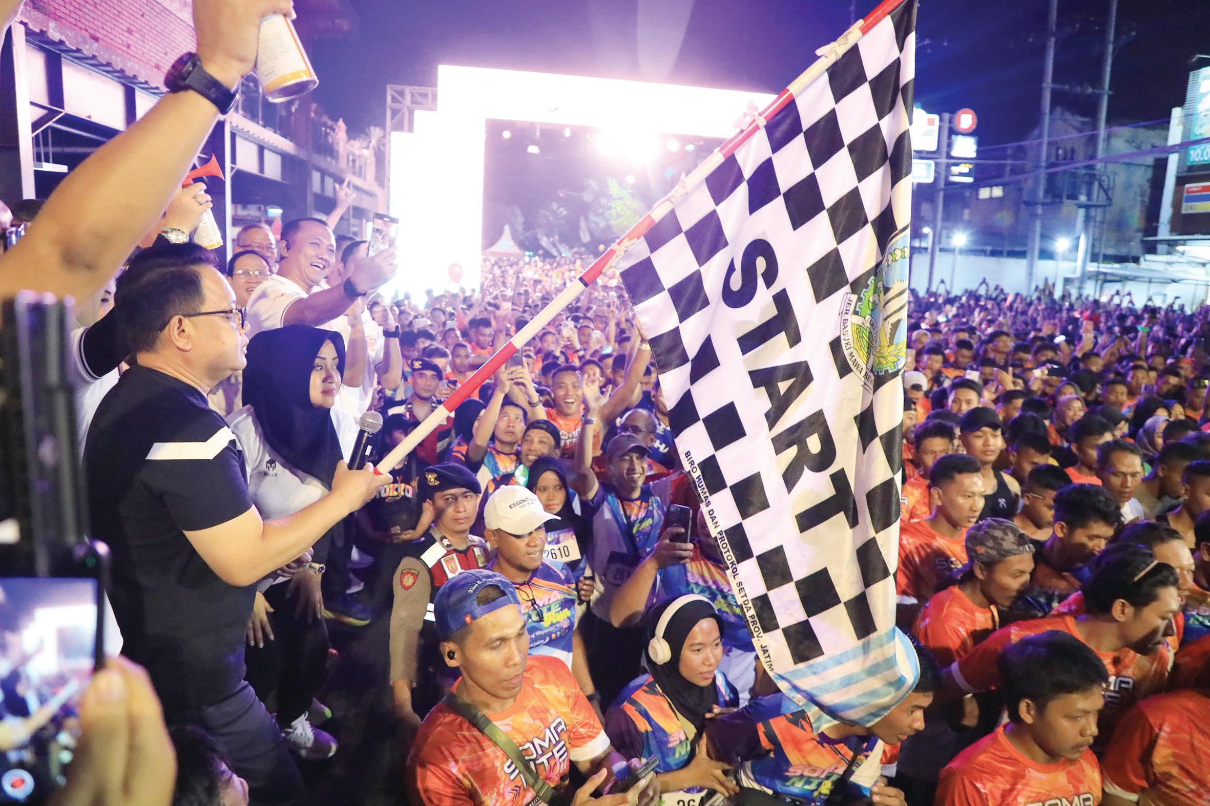 Diberangkatkan langsung oleh Penjabat (Pj) Gubernur Jawa Timur Adhy Karyono di Alun-Alun Kota Mojokerto, kegiatan ini berlangsung spektakuler dengan menghadirkan local wisdom atau kearifan lokal yang digabungkan dengan trend kekinian olahraga lari malam malam.