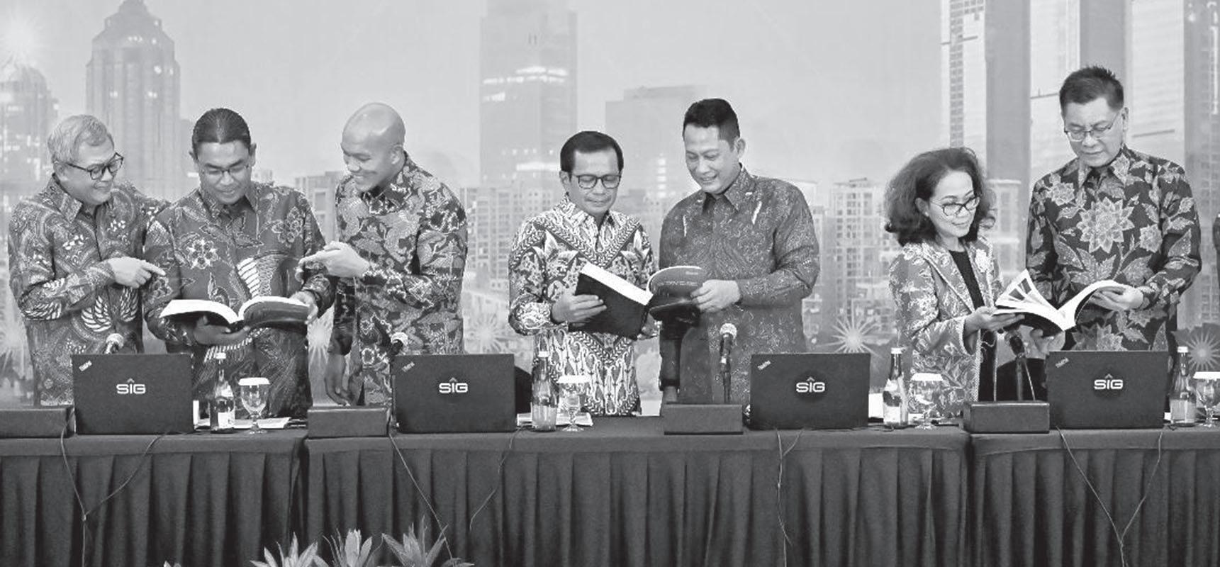 baik di tengah risiko yang membayangi sepanjang tahun ini. Perubahan pusunan pengurus perseroan rapat memberhentikan dengan hormat Lydia Silvanna Djaman, sebagai komisaris SIG. Yang diangkat berdasarkan keputusan RUPST Tahun Buku 2018 tanggal 22 Mei 2019, terhitung sejak ditutupnya RUPST hari ini. Rapat mengangkat Lydia Silvanna Djaman, sebagai komisaris SIG dengan masa jabatan sesuai dengan ketentuan anggaran dasar perseroan. Serta memperhatikan peraturan perundang-undangan di bidang pasar modal, dan tanpa mengurangi hak RUPS untuk memberhentikan sewaktu-waktu.