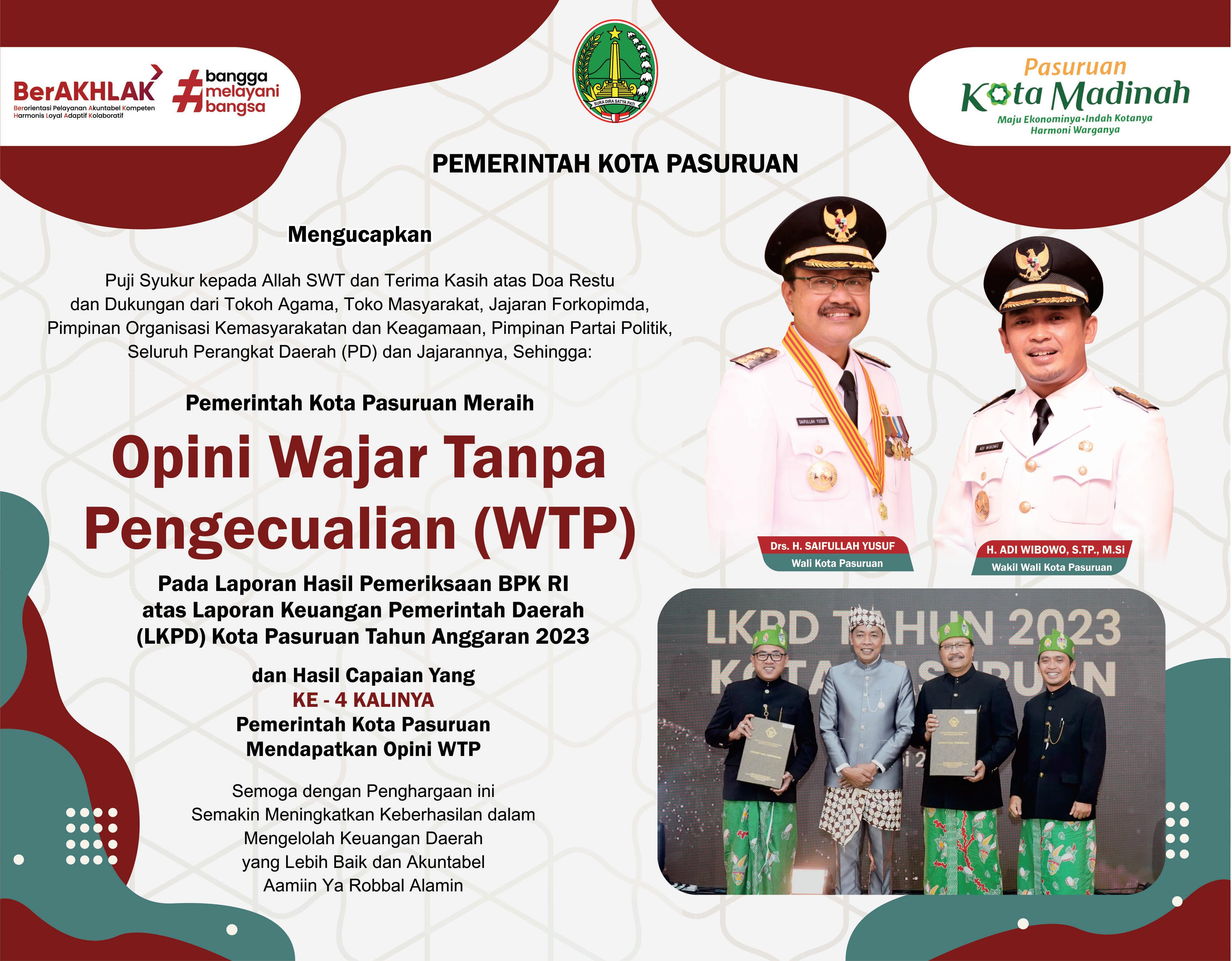 predikat Opini Wajar Tanpa Pengecualian (WTP) dari BPK Republik Indonesia.