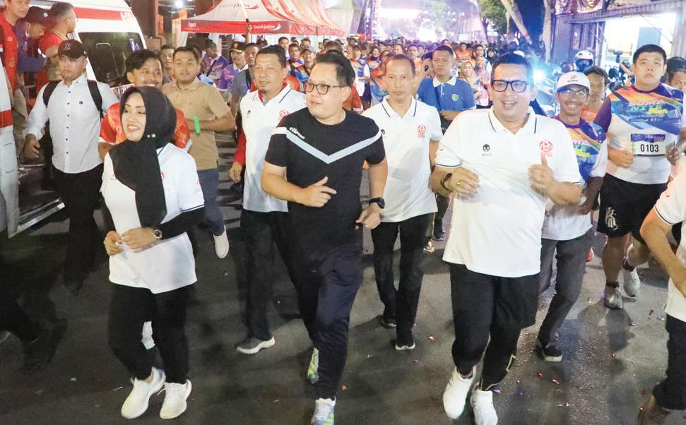 Pj Gubernur Jawa Timur Adhy Karyono terus menggaungkan gaya hidup sehat dengan menghadirkan local wisdom atau kearifan lokal yang digabungkan dengan tren kekinian olahraga lari malam hari.