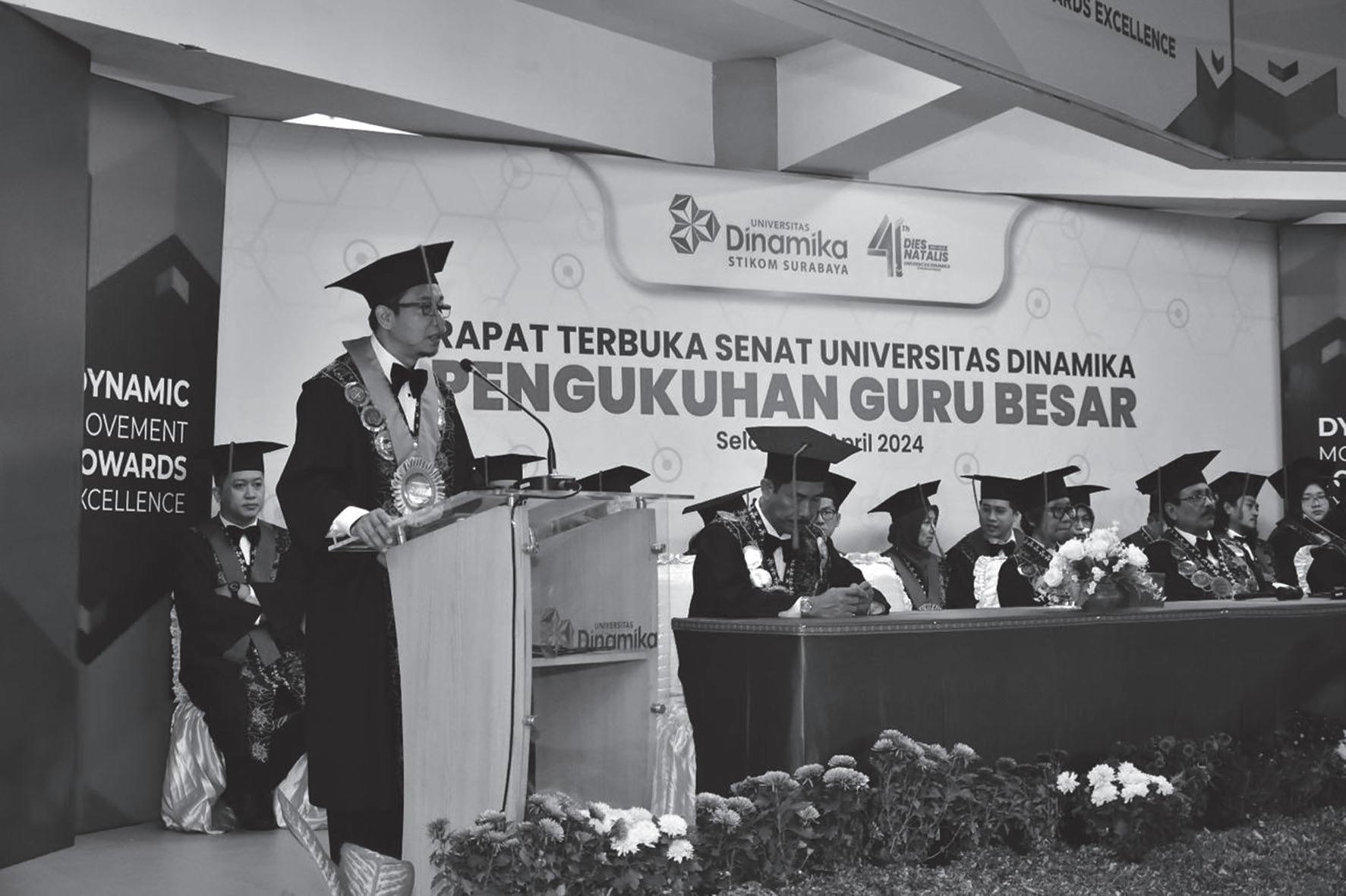 Universitas Dinamika (STIKOM Surabaya) Bambang Hariadi dikukuhkan menjadi Guru Besar bidang Ilmu Teknologi Pembelajaran, Selasa (30/4) Acara pengukuhan Guru Besar ini bertepatan dengan peringatan Dies Natalis ke-41 Universitas Dinamika. Acara ini dihadiri oleh para tamu-tamu undangan, seperti perwakilan dari LLDIKTI Wilayah VII, Ketua Pembina Yayasan Putra Bhakti Sentosa (yayasan yang menaungi Universitas Dinamika) beserta pengurus lainnya, keluarga dan kerabat dari Bambang Hariadi, struktural non-dosen, dosen, dan masih banyak lagi. Acara dibuka oleh Budi Jatmiko, Rektor Universitas Dinamika, yang membuka Rapat Terbuka Senat Universitas Dinamika terkait Pengukuhan Guru Besar, dan dilanjutkan oleh pembacaan salinan Keputusan Menteri Pendidikan, Kebudayaan, Riset dan Teknologi tentang kenaikan jabatan akademik dosen oleh Pantjawati Sudarmaningtyas, Wakil Rektor I Universitas Dinamika. Setelah pembacaan keputusan Menteri, acara pun dilanjut ke prosesi pengukuhan guru besar yang dipimpin oleh Rektor Universitas Dinamika sekaligus pengalungan gordon ke Bambang Hariadi, yang menjadi penanda bahwa Bambang resmi dikukuhkan sebagai Guru Besar dalam bidang Ilmu