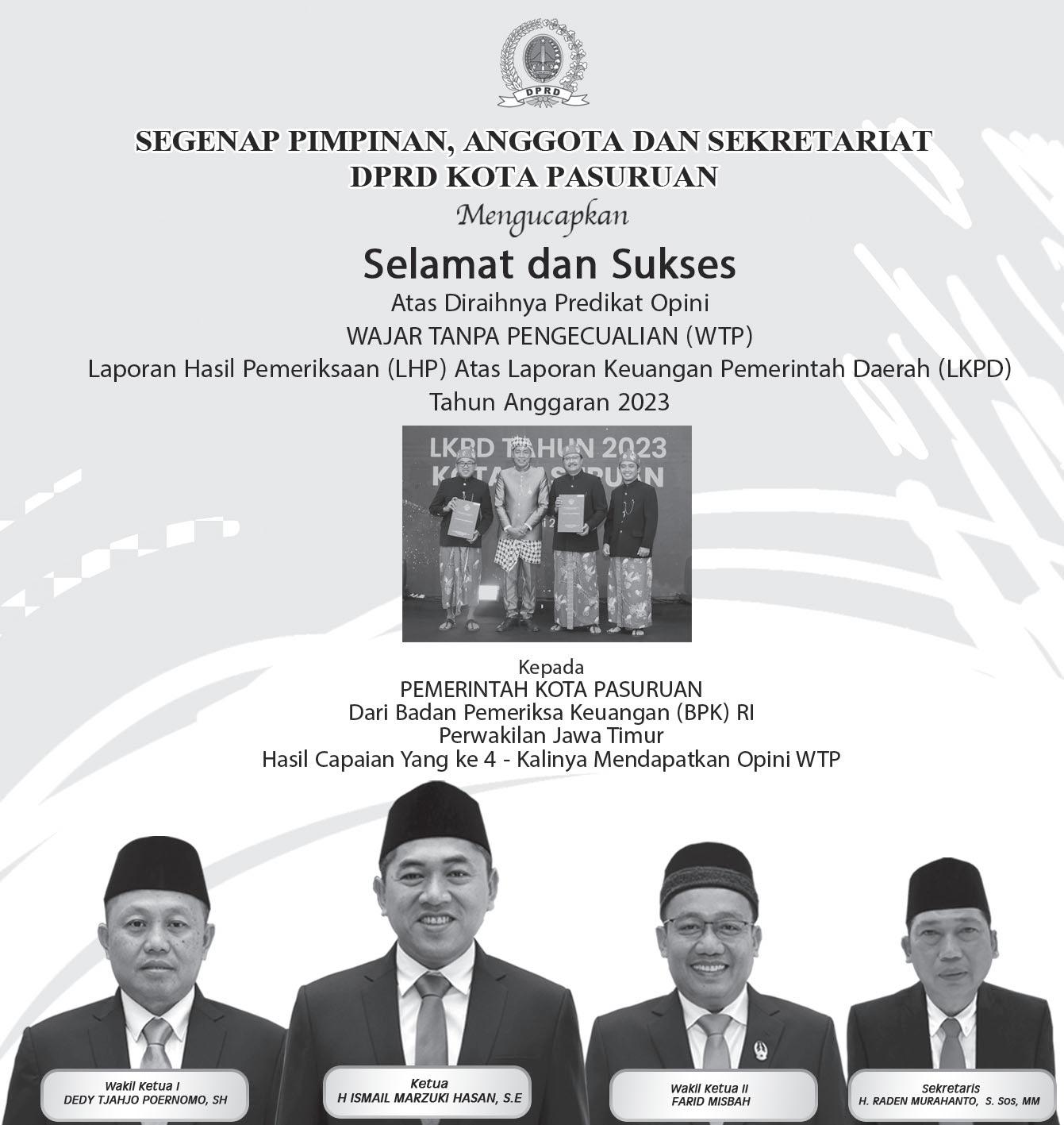 Daerah (DPRD) Kota Pasuruan terpilih pada Pemilu serentak 2024 yang lalu. Totalnya ada 30 Caleg terpilih.