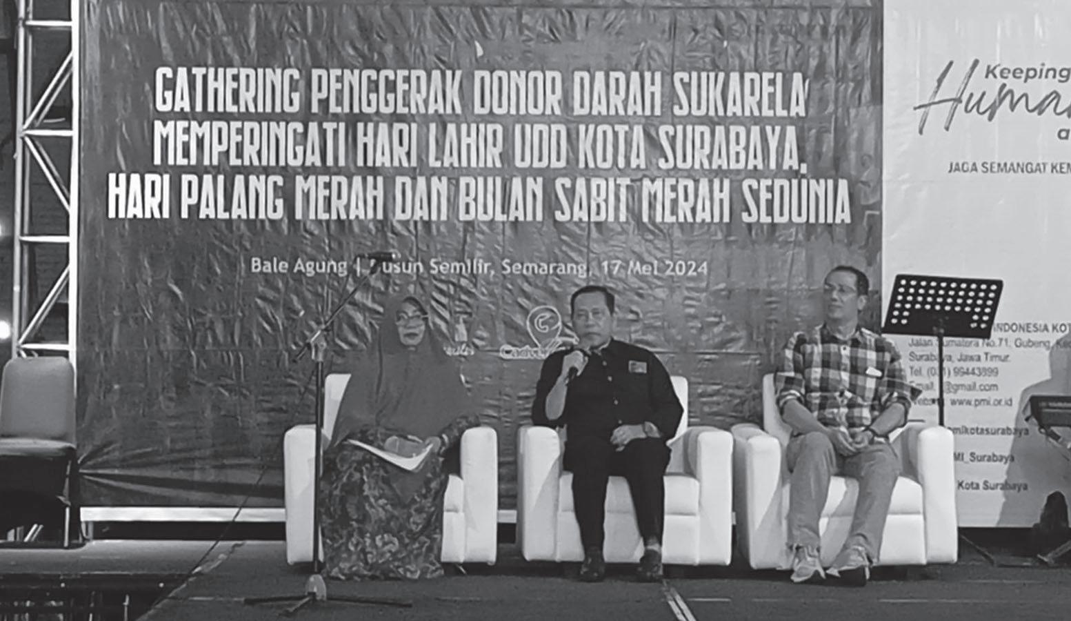 tentu bisa karena mereka ini yang menggerakkan para pendonor untuk mendonorkan darahnya baik secara pribadi maupun kolektif," jelasnya. dr. Martono menambahkan melalui gathering penggerak donor darah ini juga bisa mendorong keaktifan para pendonor untuk selalu aktif membantu sesamanya lewat donor darah dan juga memberikan nilai kemanusian dan menguatkan kebersamaan sosial. "Gathering ini juga merupakan suatu kebersamaan di mana kita bisa bertemu antara penggerak yang satu dengan yang lainnya baik instansi yang satu maupun instansi yang lainnya. Jadi mungkin kalau ada keluhan-keluhan dari instansi satu atau lainnya bisa saling membantu mencari solusi," papar dr Martono. Harapannya dari kegiatan gathering penggerak donor darah ini dapat membantu PMI jika ada perubahan program menuju kebaikan, seperti