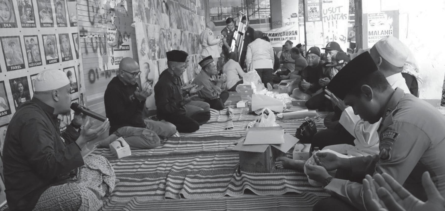 Doa bersama Polres Malang dan keluarga korban Tragedi Kanjuruhan, digelar di Pintu 13 Stadion Kanjuruhan Kepanjen, Kabupaten Malang. Hal itu bertujuan untuk mempererat tali silaturahmi sekaligus mendoakan arwah para korban Tragedi Kanjuruhan, yang terjadi pada 1 Oktober 2022, atau 1,5 tahun peristiwa itu yang telah menewaskan 135 orang supoter Aremania. Dalam doa bersama tersebut, telah dihadiri Kapolres Malang AKBP Putu Kholis Aryana beserta seluruh pejabat utama dan Kapolsek jajaran Polres Malang, Keluarga korban Tragedi Kanjuruhan yang tergabung dalam Jaringan Solidaritas Keadilan Korban Kanjuruhan (JSKK) dan Perkumpulan Kerukunan Keluarga Korban Kanjuruhan (PK3). Kapolres Malang AKBP Putu Kholis Aryana, Minggu (19/5), kepada wartawan menyampaikan, bahwa kegiatan doa bersama ini adalah wujud komitmen Polres Malang untuk terus mendampingi dan mendukung keluarga korban Tragedi Kanjuruhan. “Kami bersama keluarga korban Tragedi Kanjuruhan hadir di Pintu 13 Stadion Kanjuruhan untuk memanjatkan doa kepada Allah SWT, membaca Yasin, dan tahlilan untuk seluruh almarhum/almarhumah Tragedi Kanjuruhan,” ujarnya.