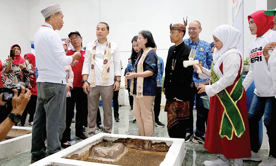 Wali Kota Surabaya Eri Cahyadi didampingi Ketua TP PKK Kota Surabaya Rini Indriyani Eri Cahyadi meresmikan Rumah Maggot dan Eco Enzim di Jl Kebonsari Sekolahan II No 2, Jambangan, Surabaya.