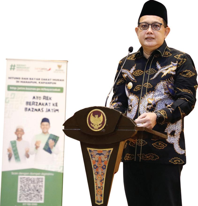 ucap Adhy. Selain santunan kepada anak yatim, penyaluran Bansos dan tali asih kepada pilarpilar sosial Jatim serta Zakat Produktif kepada pelaku usaha ultra mikro, disebut Adhy, merupakan wujud perhatian Pemprov Jatim. “Penyaluran Zakat Produktif ini merupakan salah satu upaya kita agar masyarakat terhindar dari jeratan rentenir,” ucapnya. Untuk itu, ia turut serta mengajak masyarakat memperbanyak amalan-amalan kebaikan, termasuk berinfak, bersedekah dan berzakat, terutama di Bulan Ramadhan. Berzakat yang merupakan kewajiban setiap umat Islam sebagai wujud rasa syukur atas segala nikmat yang telah Allah SWT