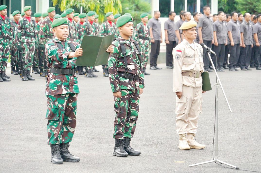Upacara bendera tujuh belasan yang diadakan oleh Korem 084/BJ, Senin (18/3).